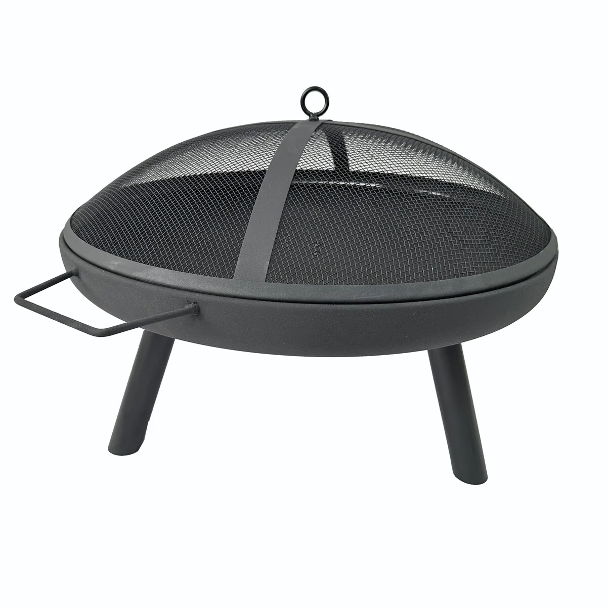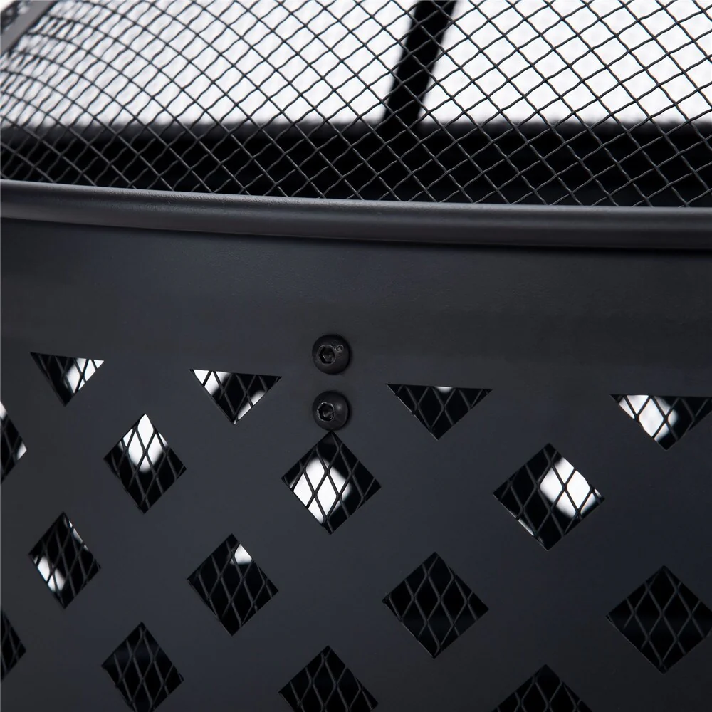 Round Outdoor Steel Wood Burning Fire Pit with Spark Screen for Backyard Garden Camping Bonfire Patio,Black