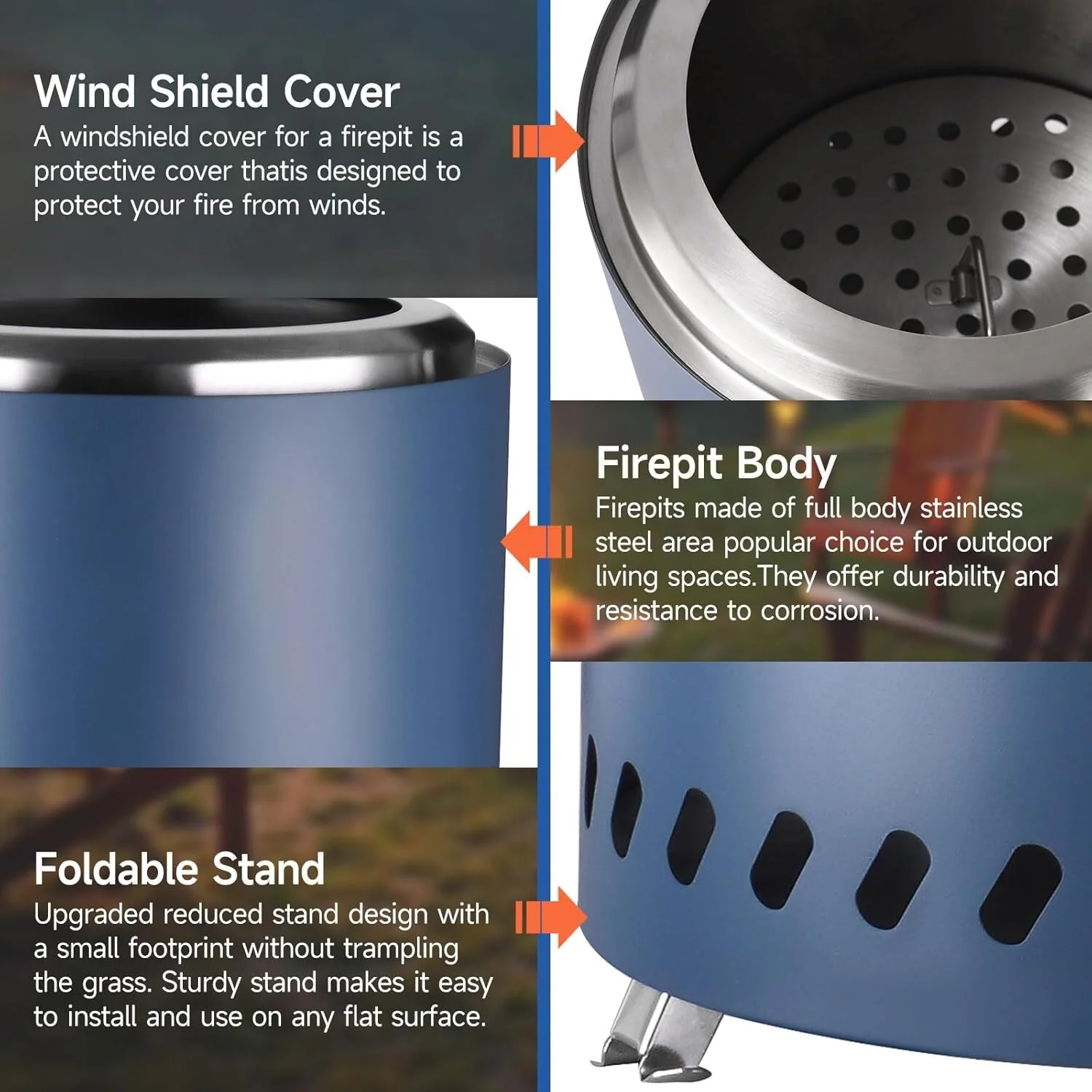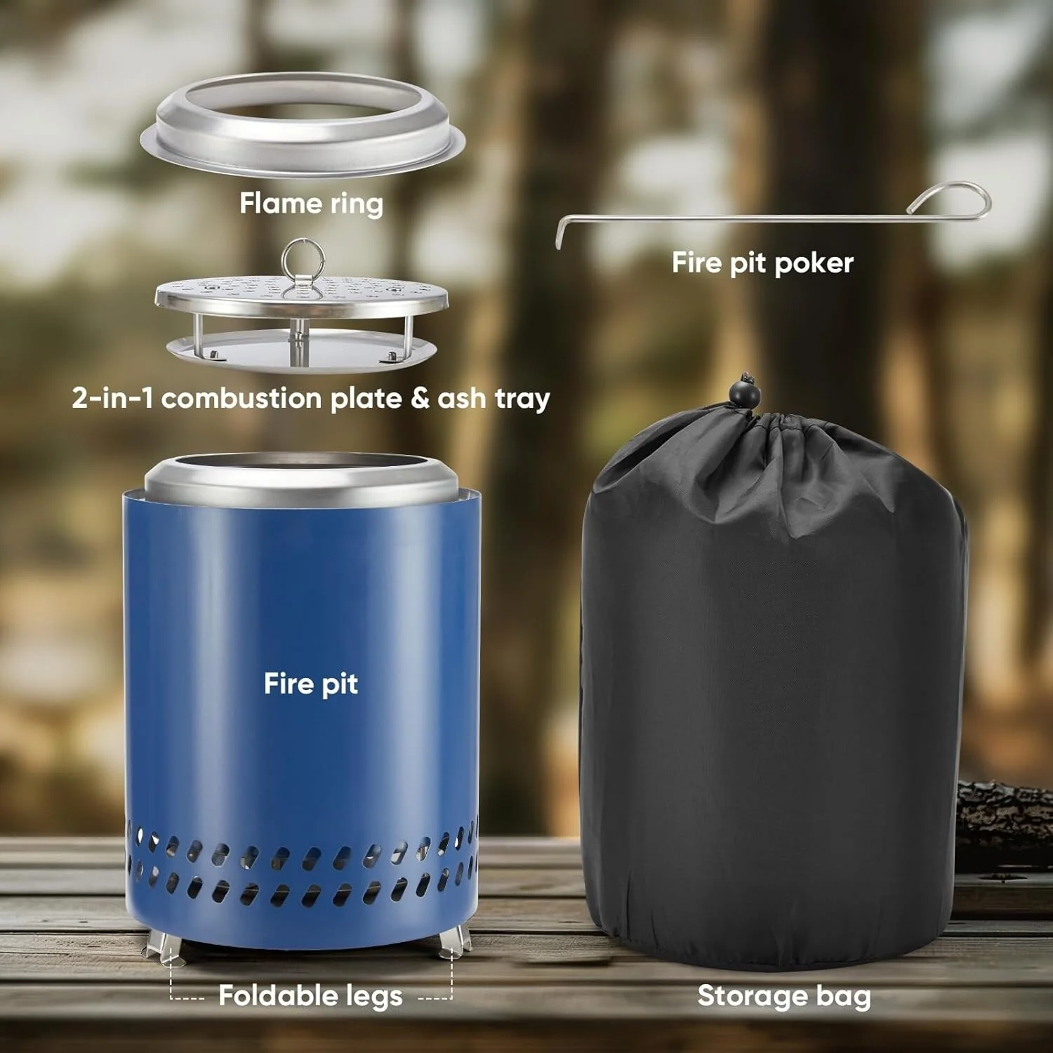 7 Inch Tabletop Fire Pit with Stand - Stainless Steel Fire Pit for Camping, Outdoor & Patio- Wood Burning or Pellet Fueled