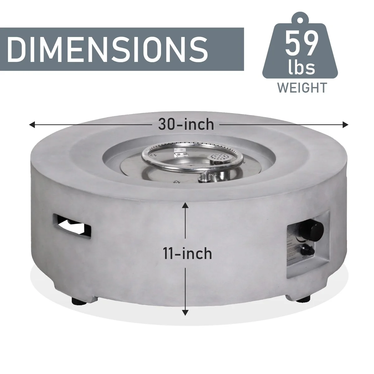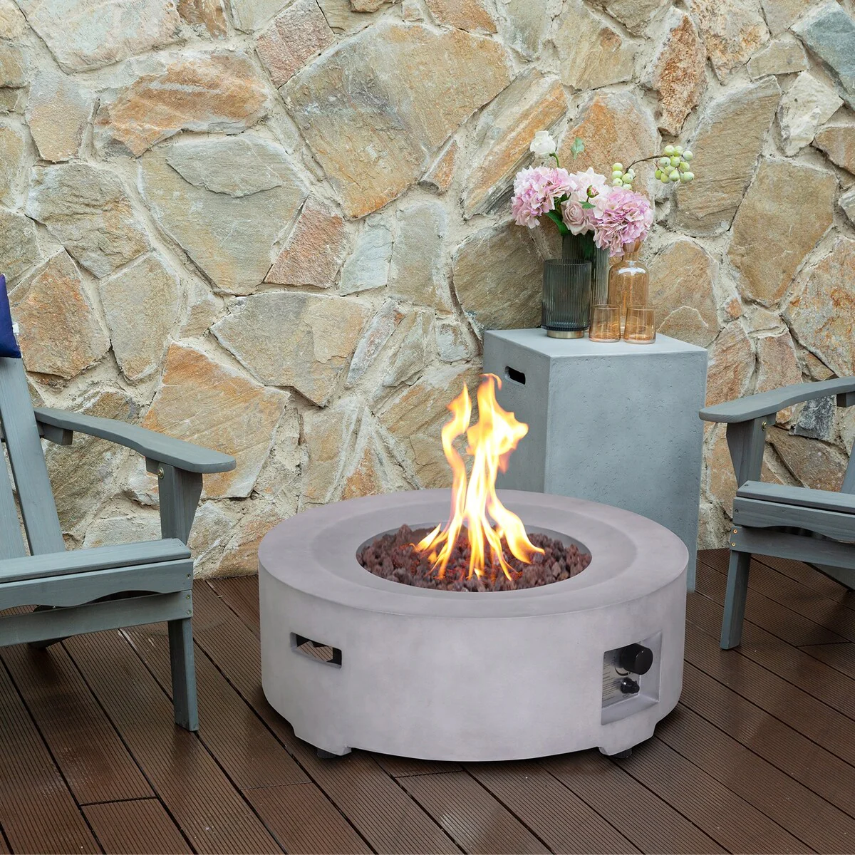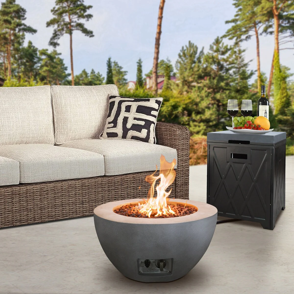 Luxor Outdoor Concrete GRC Propane Firepit Includes Lava Rocks and Lid