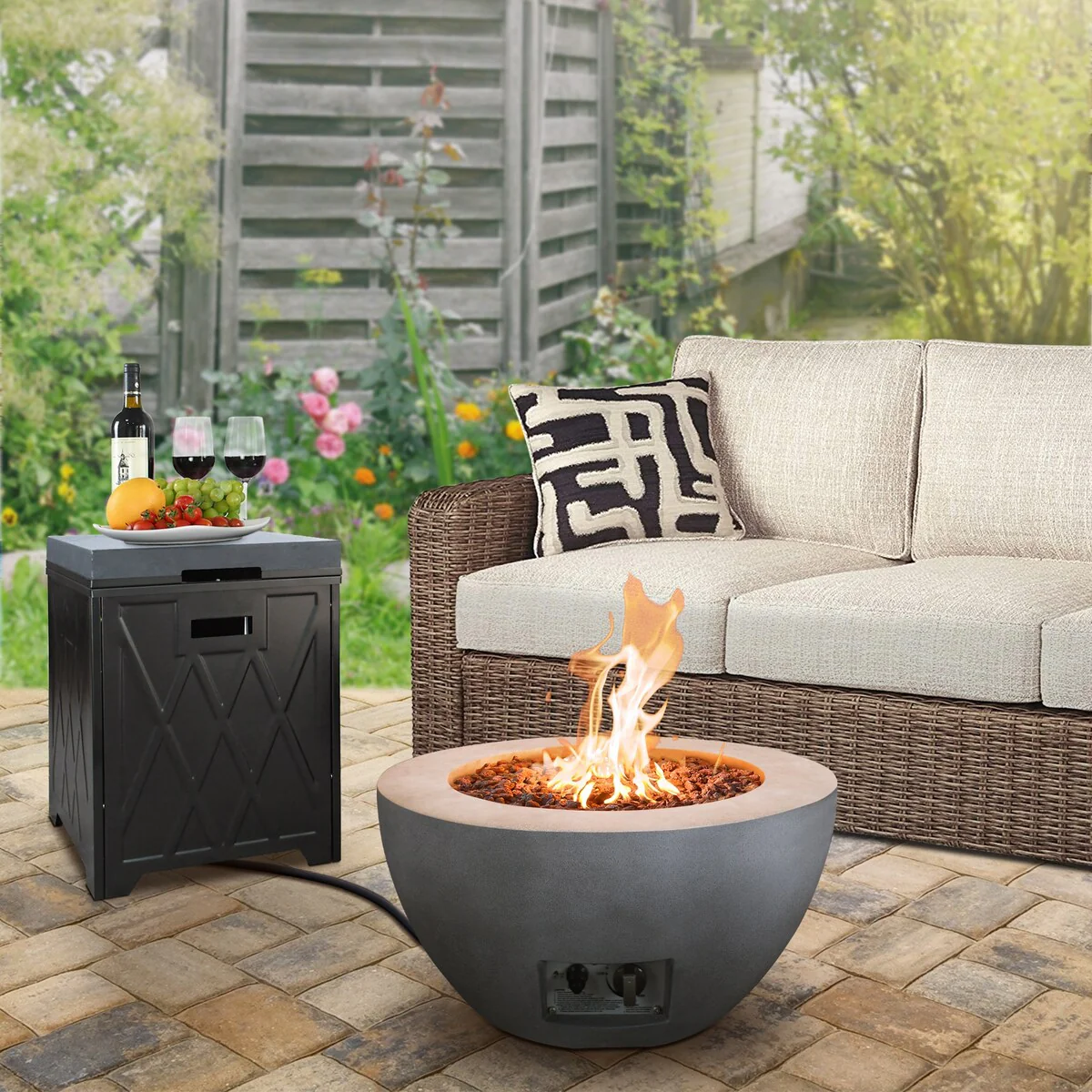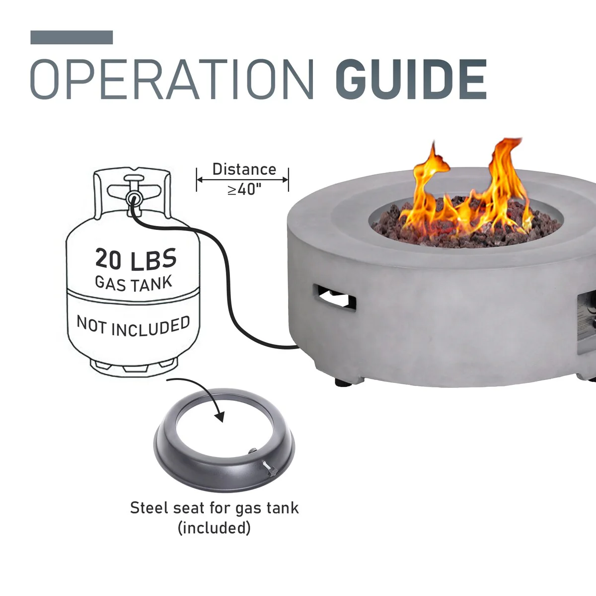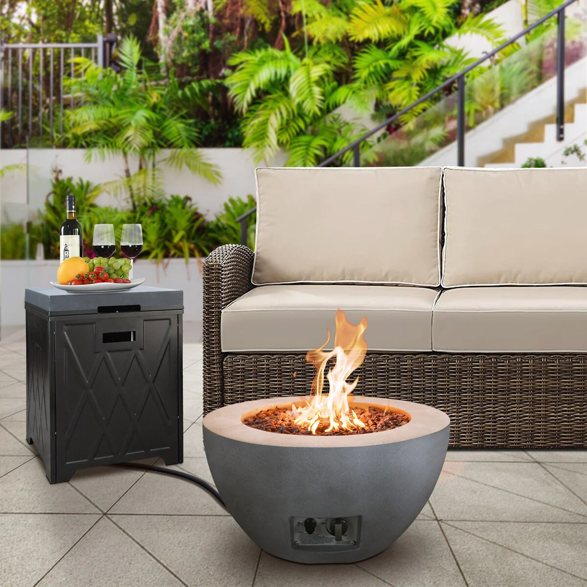 Luxor Outdoor Concrete GRC Propane Firepit Includes Lava Rocks and Lid