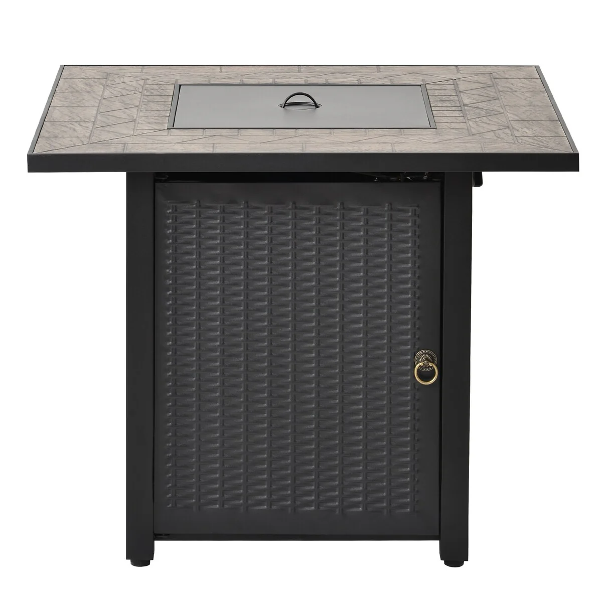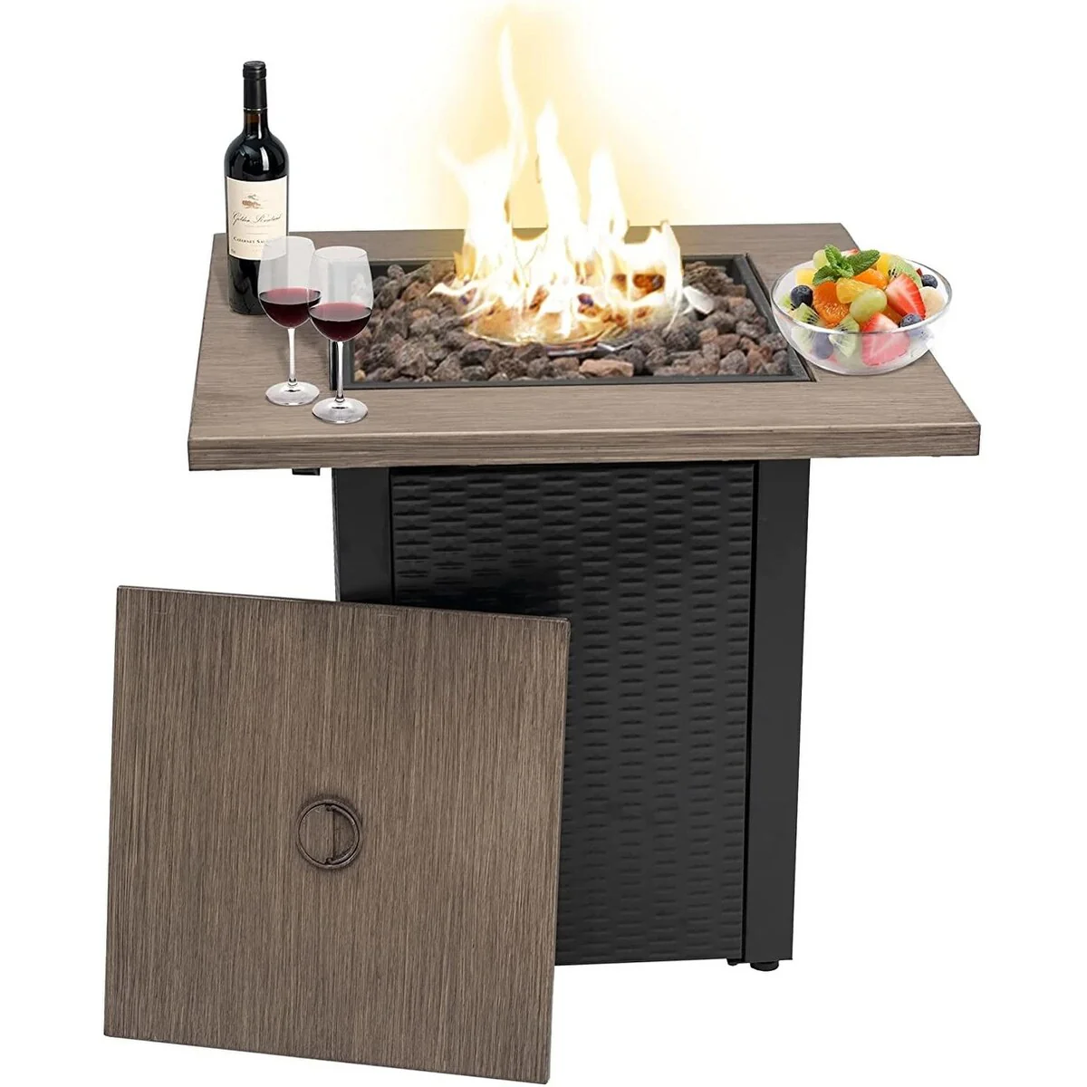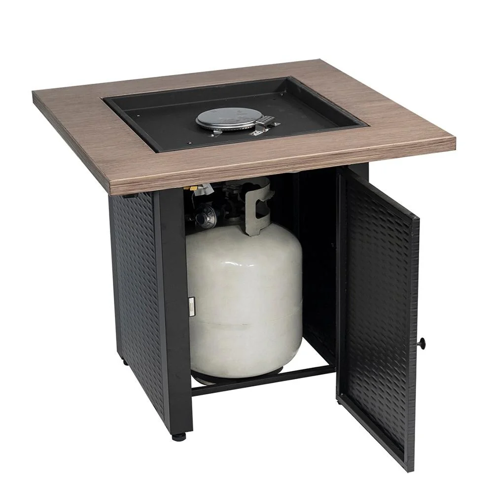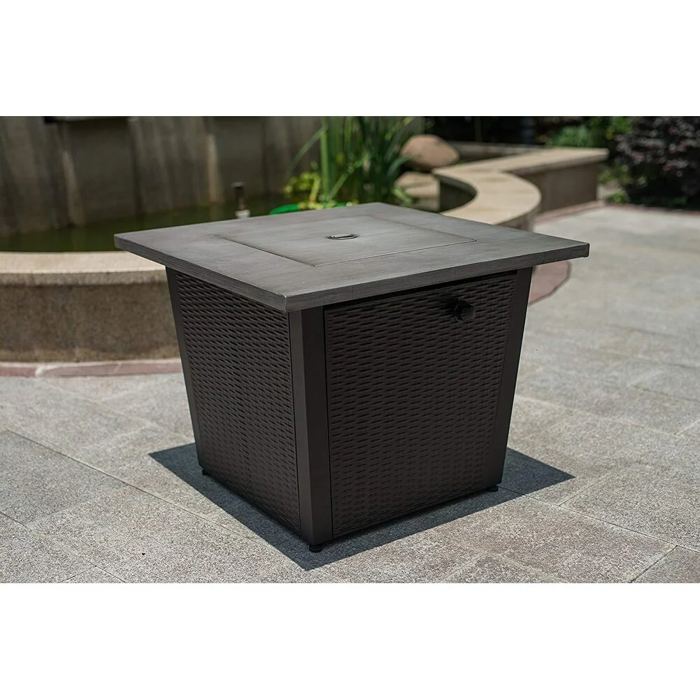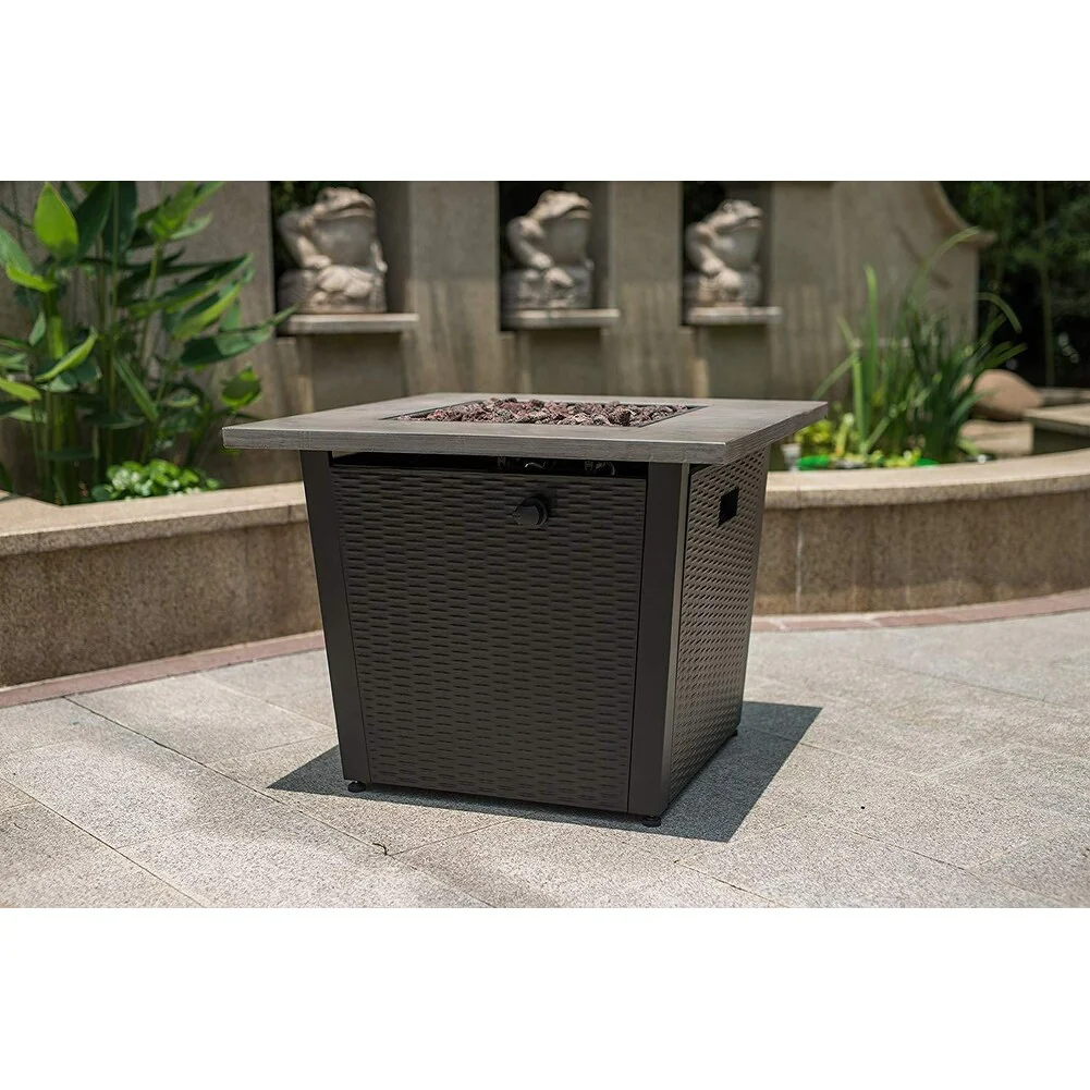 50,000 BTU 32inch Square Outdoor Propane Fire Pits Table, Wood Grain Table Top with Lid, ETL Certification