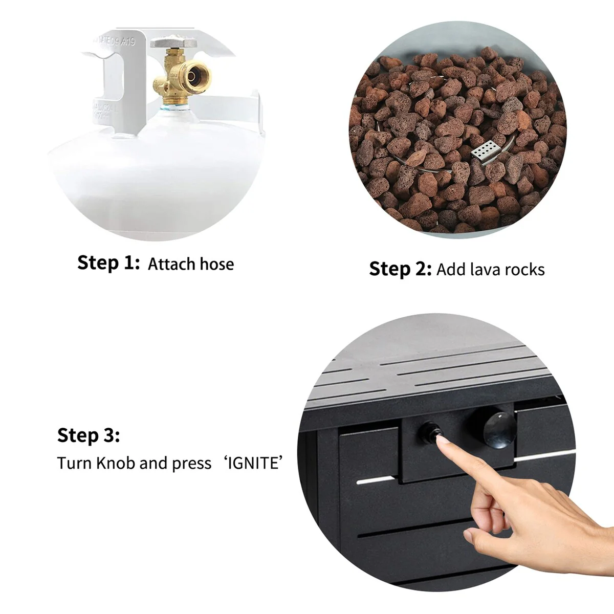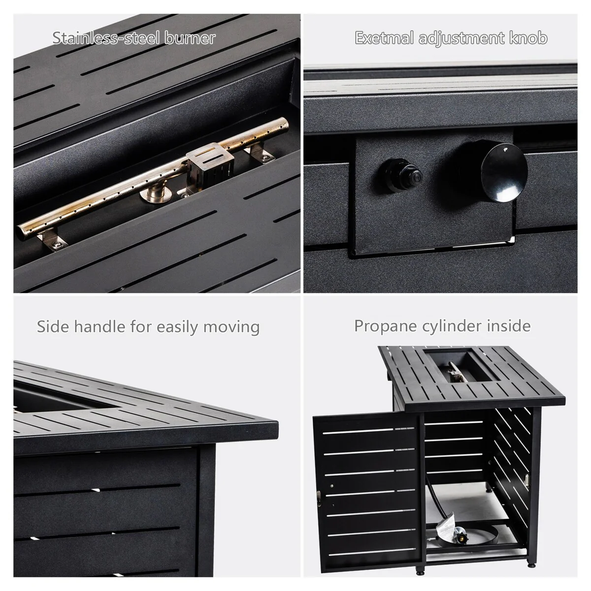 Outdoor Propane Gas Fire Pit Table with Stainless Steel Heater and Control Knob - N/A