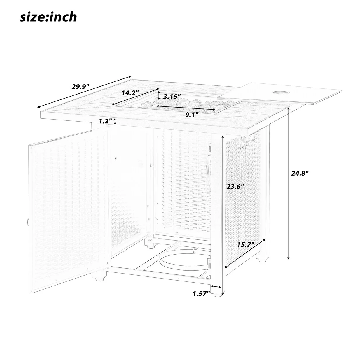 28" Square Mgo Fire Pit