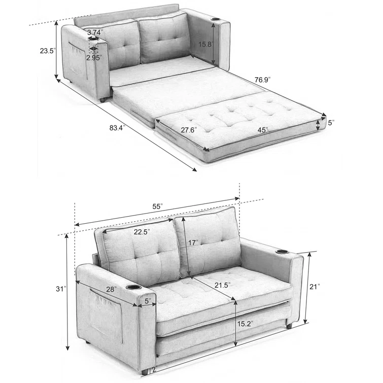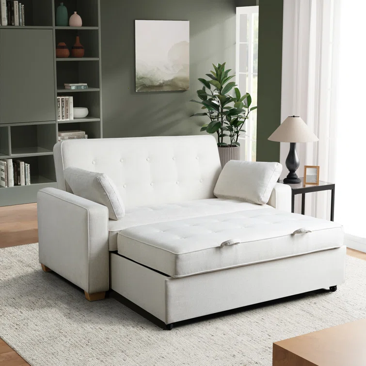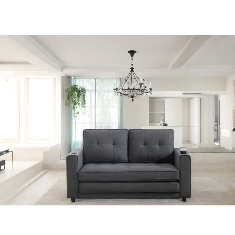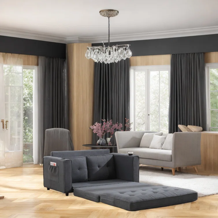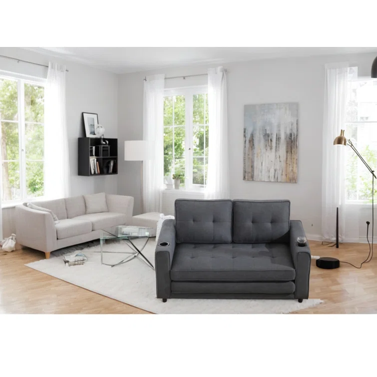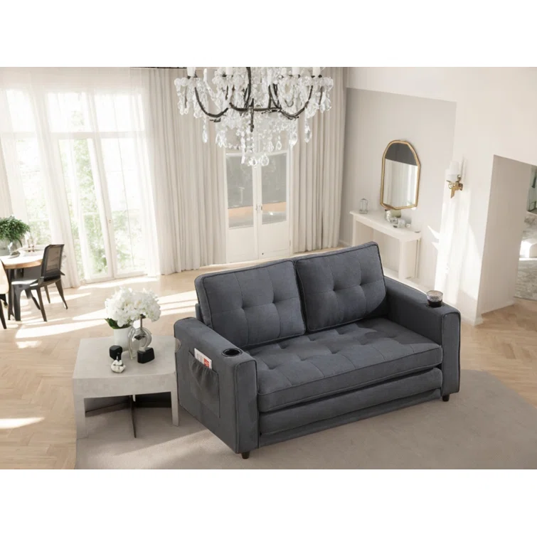 3-in-1 Convertible Sofa Bed Upholstered Tufted Futon Sofa Bed With Cup Holders,pull-out Sleeper