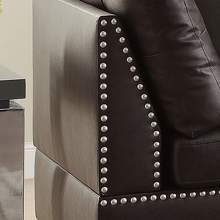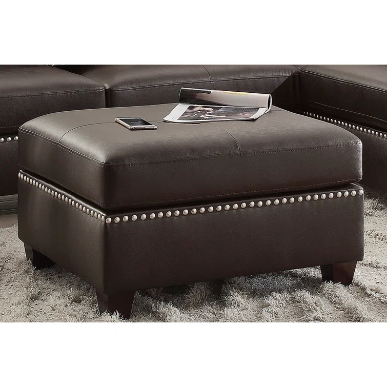 Milani 104" Wide Espresso Faux Leather Right Hand Facing Sofa & Chaise with Ottoman