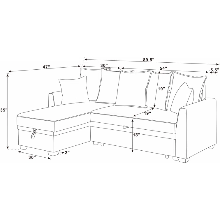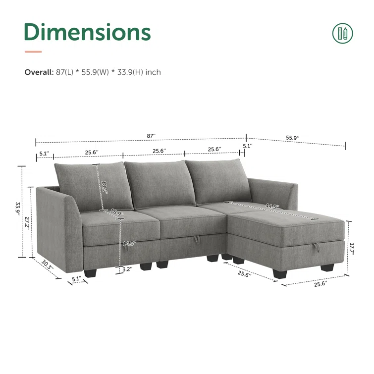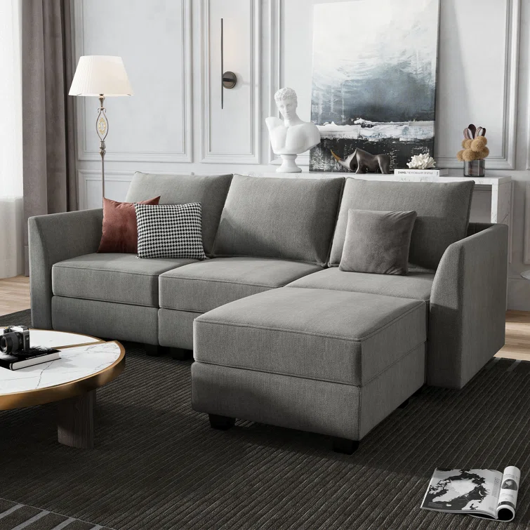 Manusite L-Shaped Modular Sectional Upholstered Couch With Storage Seat