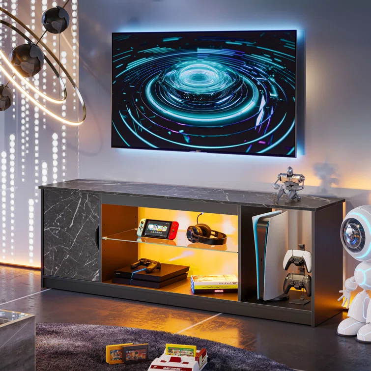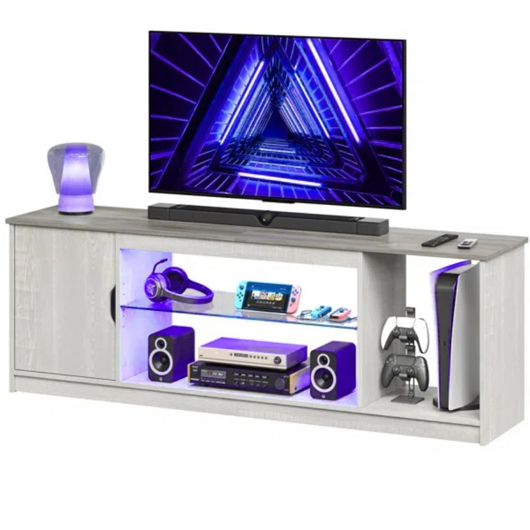 Benigno 58" Media Console, LED TV Stand for 65 Inch TV, Gaming Entertainment Centre for PS5 with Glass Shelf
