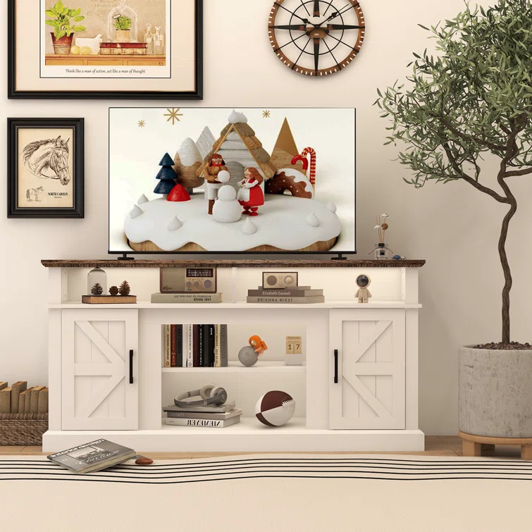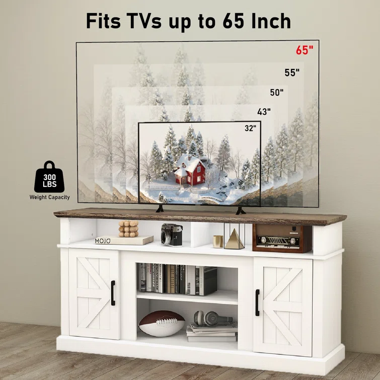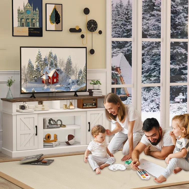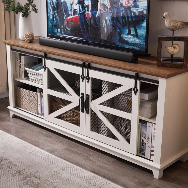Niccolina Farmhouse TV Stand for TVs up to 75" with Media Storage and Adjustable Shelves, for Living Room