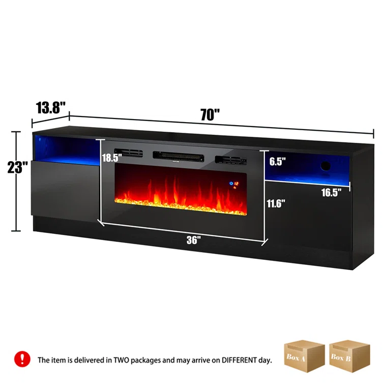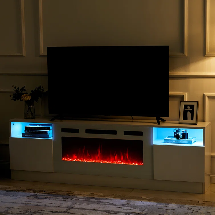 68" TV Stand With Electric Fireplace, Modern Entertainment Center, Media Console For TVs Up To 78"
