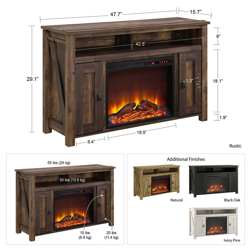 Whittier TV Stand for TVs up to 50" with Electric Fireplace Included