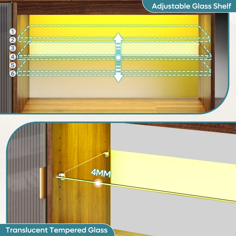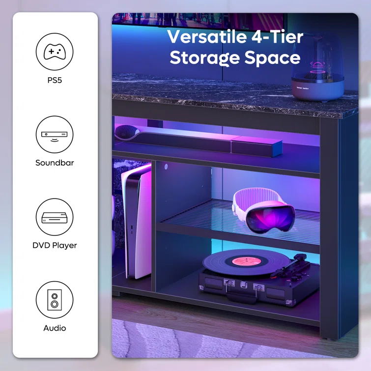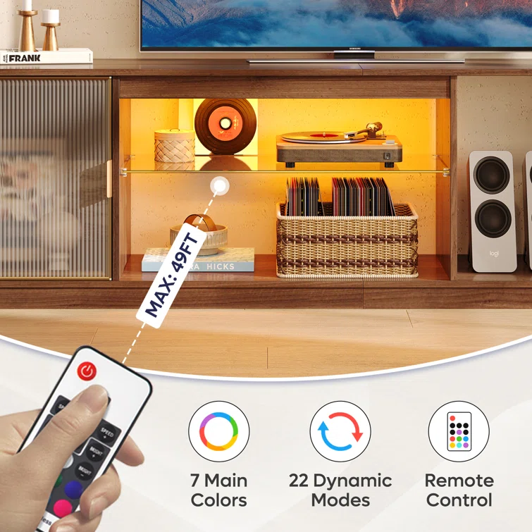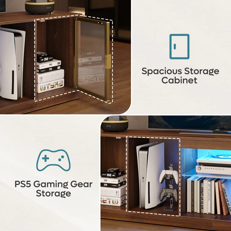 LED TV stand Cabinet, Media Console Table with Large Side Cabinet