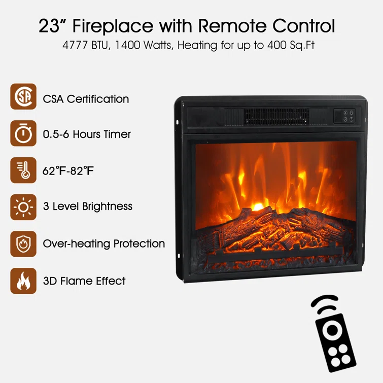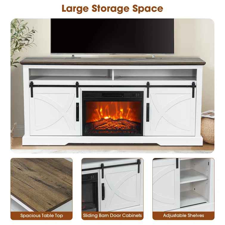 60 inch Fireplace TV Stand for TVs up to 65 inch, LED Media Console Entertainment Center with 23" Electric Fireplace Heater & Storage Cabinet With Adjustable Shelves