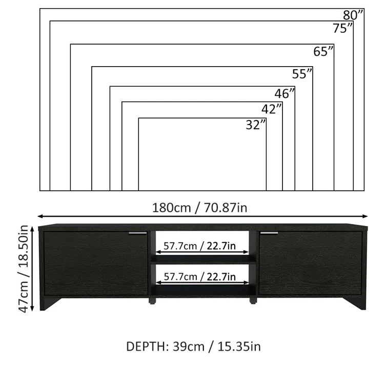 Dake 70" 2-Door TV Stand for TVs up to 80"