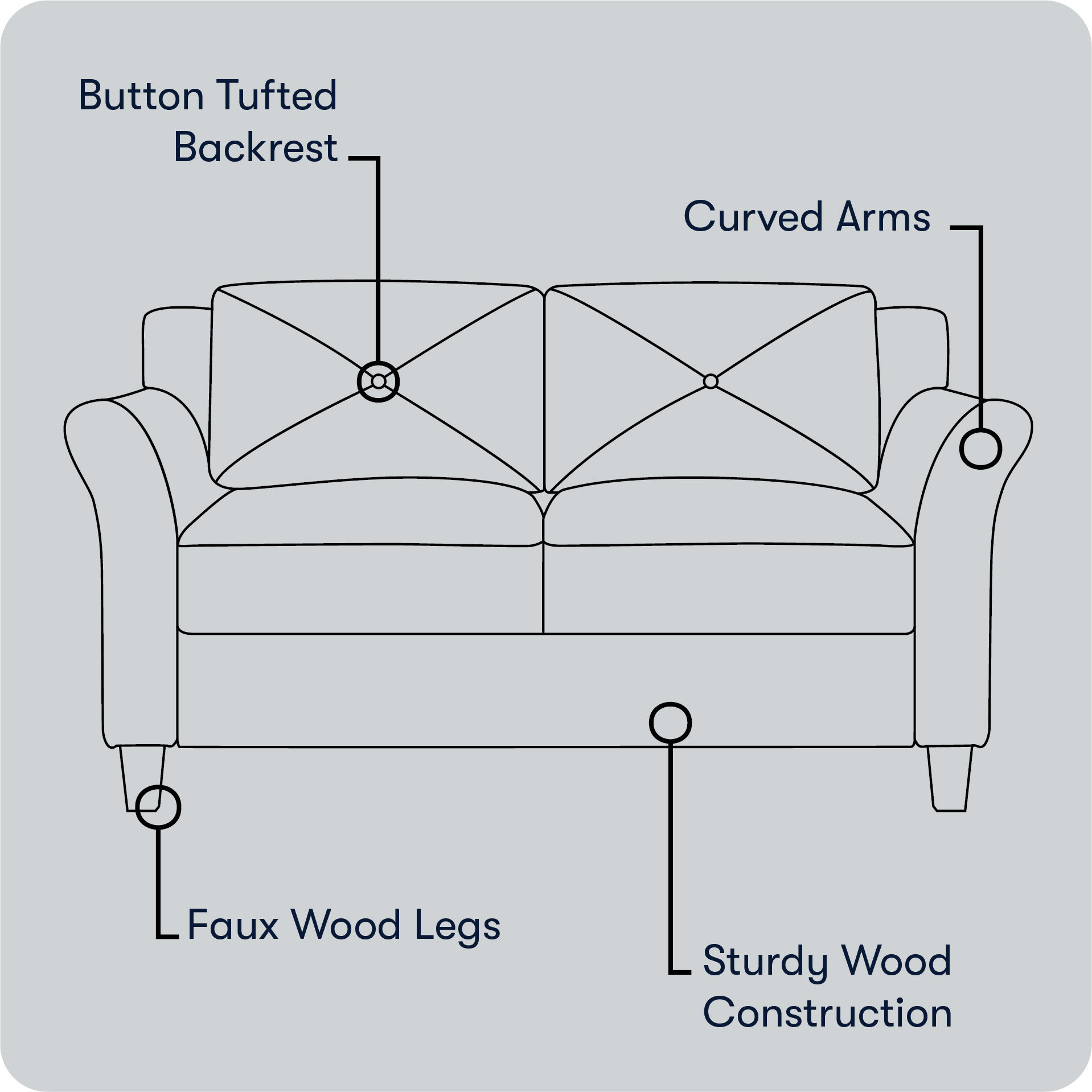 Ibiza 57.87" Round Arm Tufted Back Loveseat