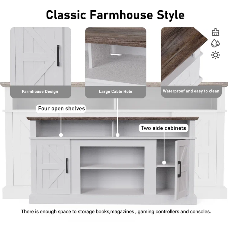 Brixham 74 inch Fireplace TV Stand Console for TVs up to 85 inches, Two-Tone Finish