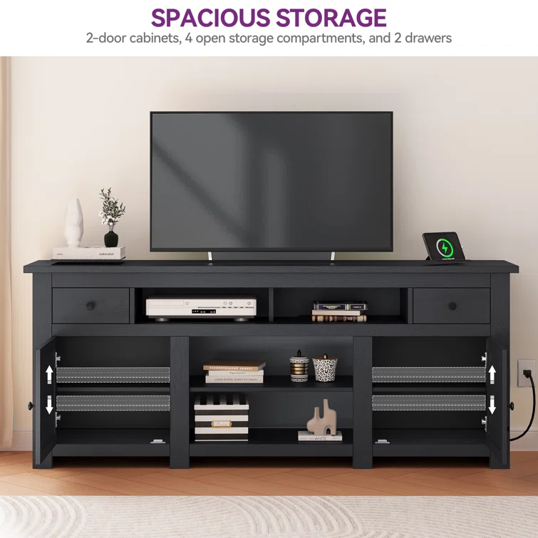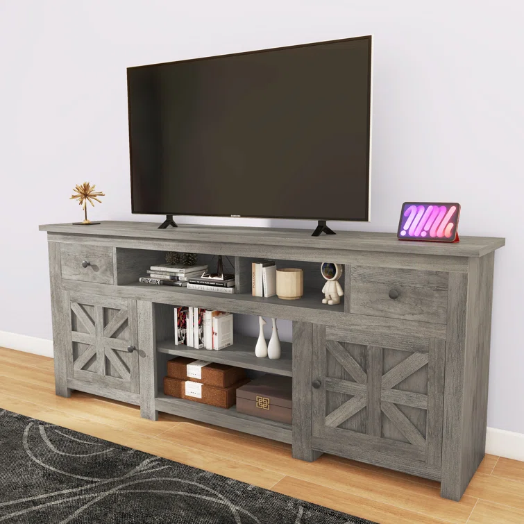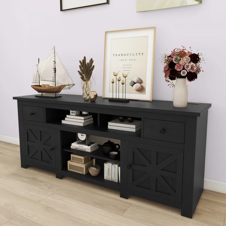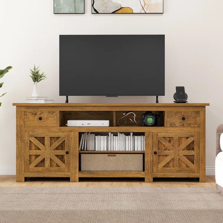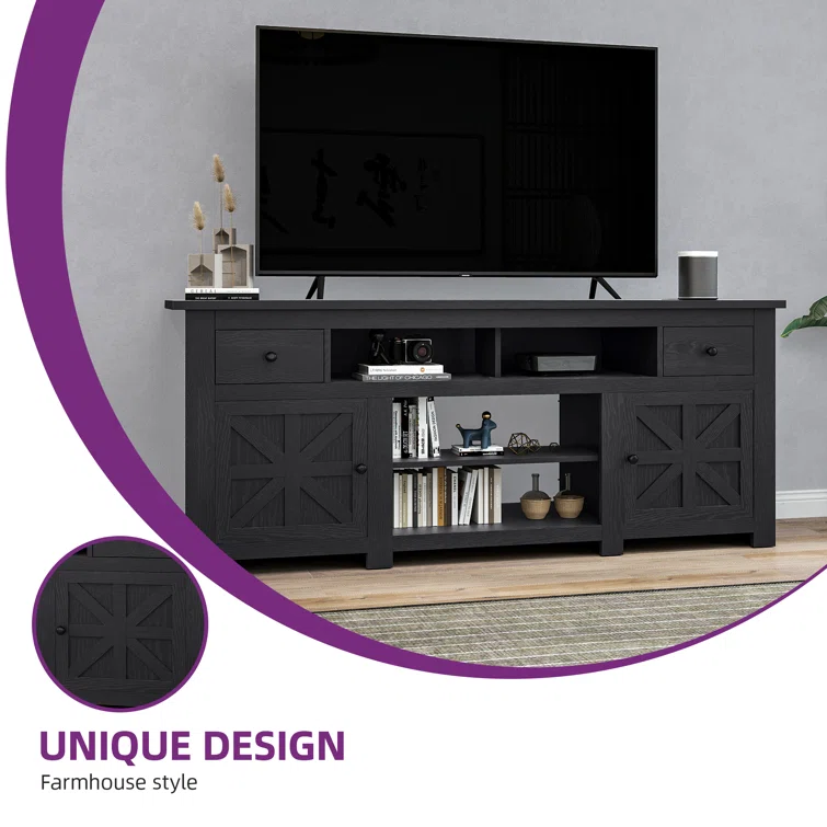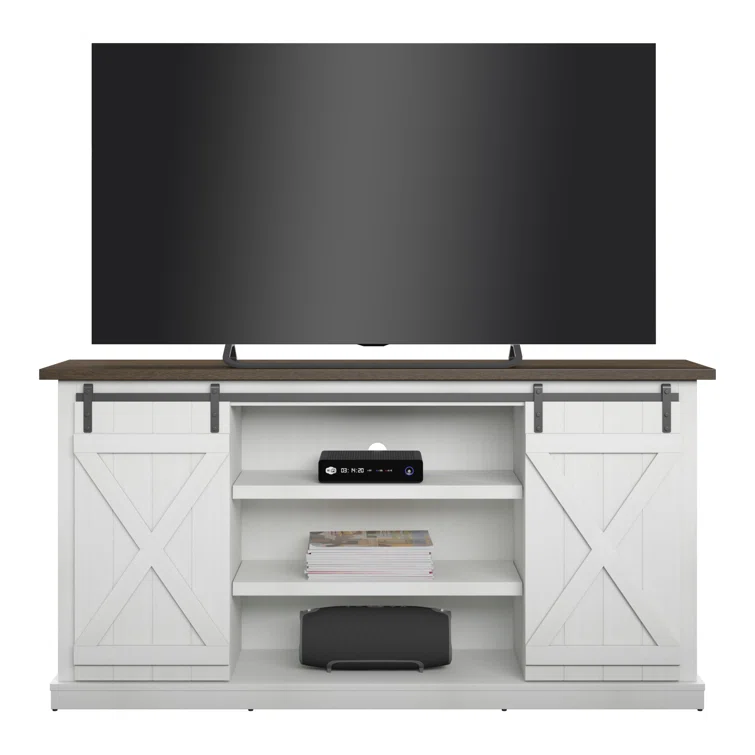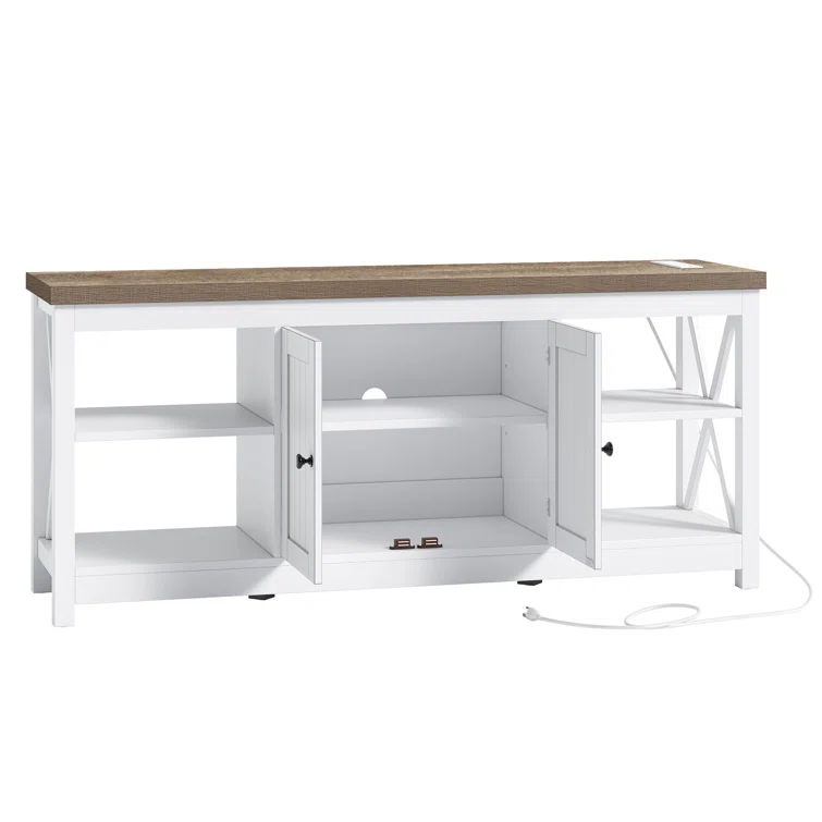 Wolverton Farm House TV Stand for TVs up to 65" with 2 Cabinets and Power Outlet