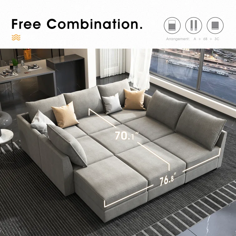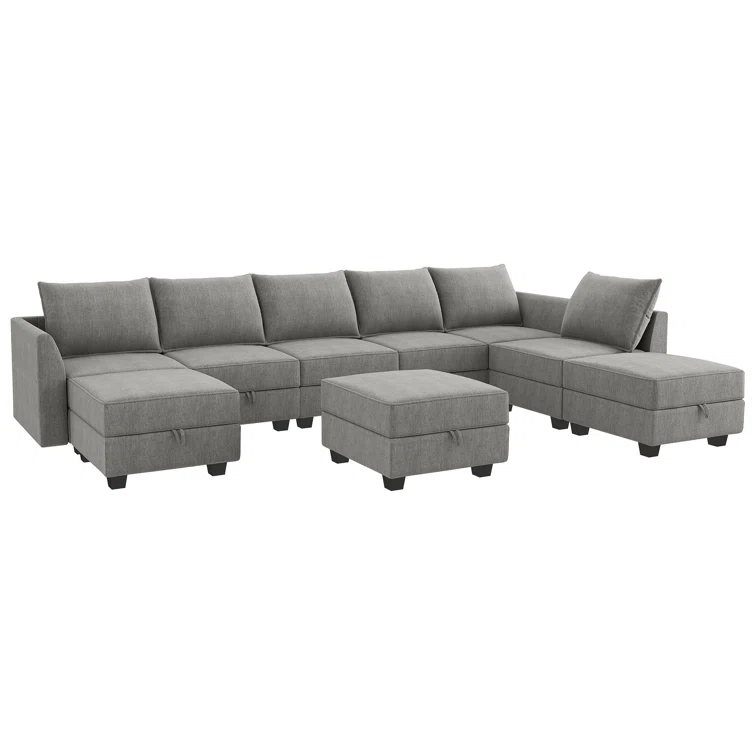 U shaped Modular Sectional Grey Sectional Sofa with Chaise