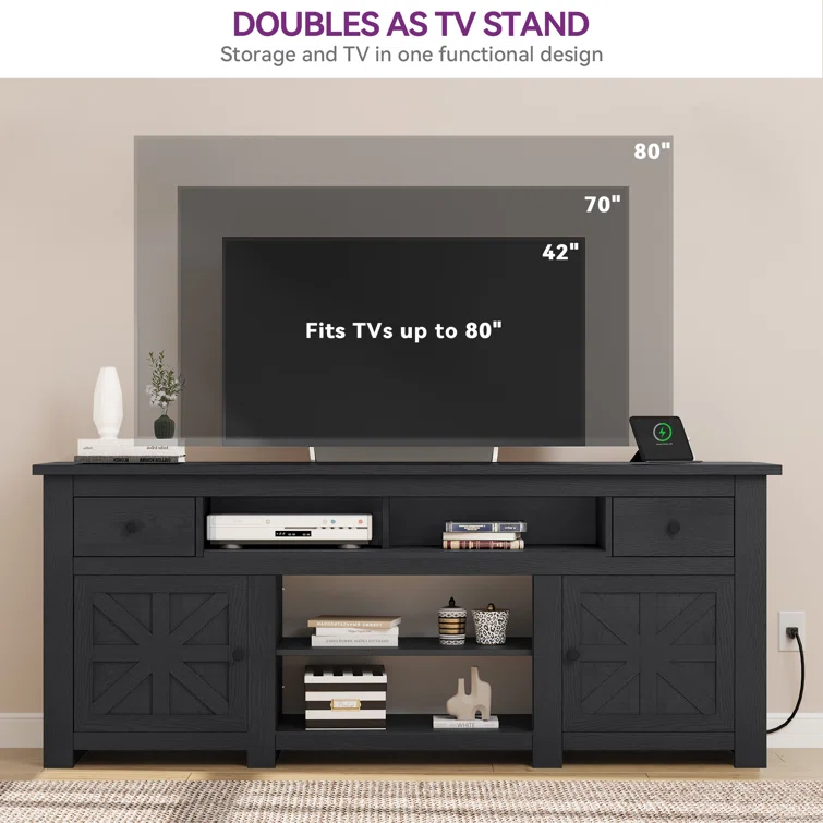 Farmhouse TV Stand for TVs up to 80", Entertainment Center with Power Outlet, TV Console