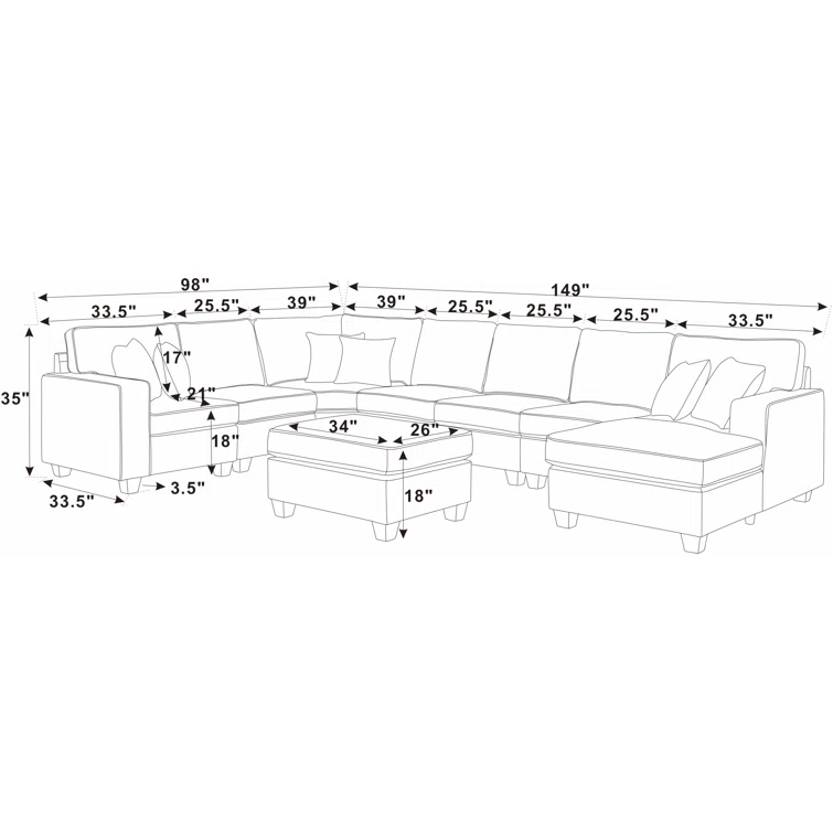 Arfsten 10 - Piece Corduroy Sectional