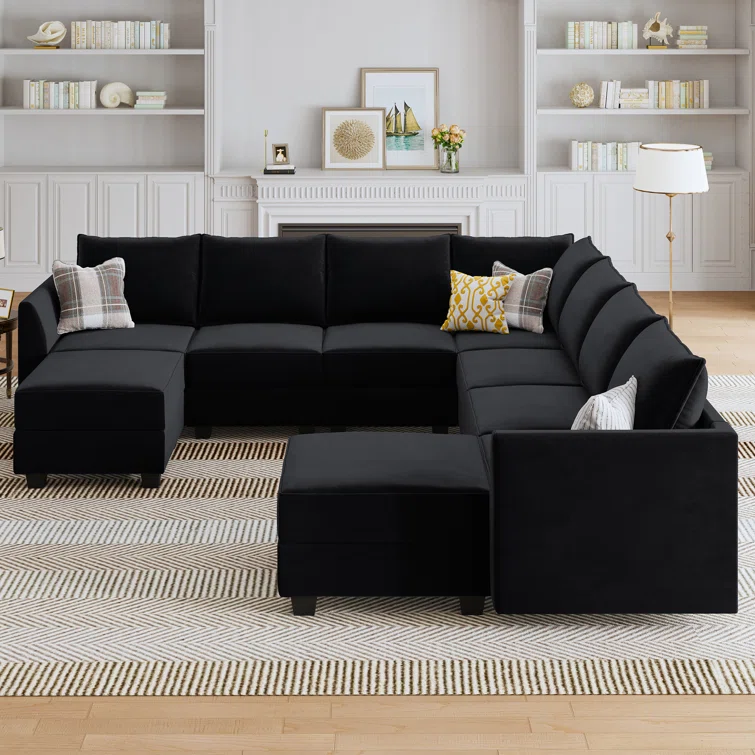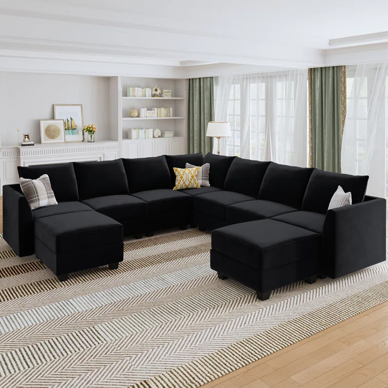Berenika U-shaped Modular Sectional Sofa Reversible Velvet Sectional Sofa Couch With Chaise