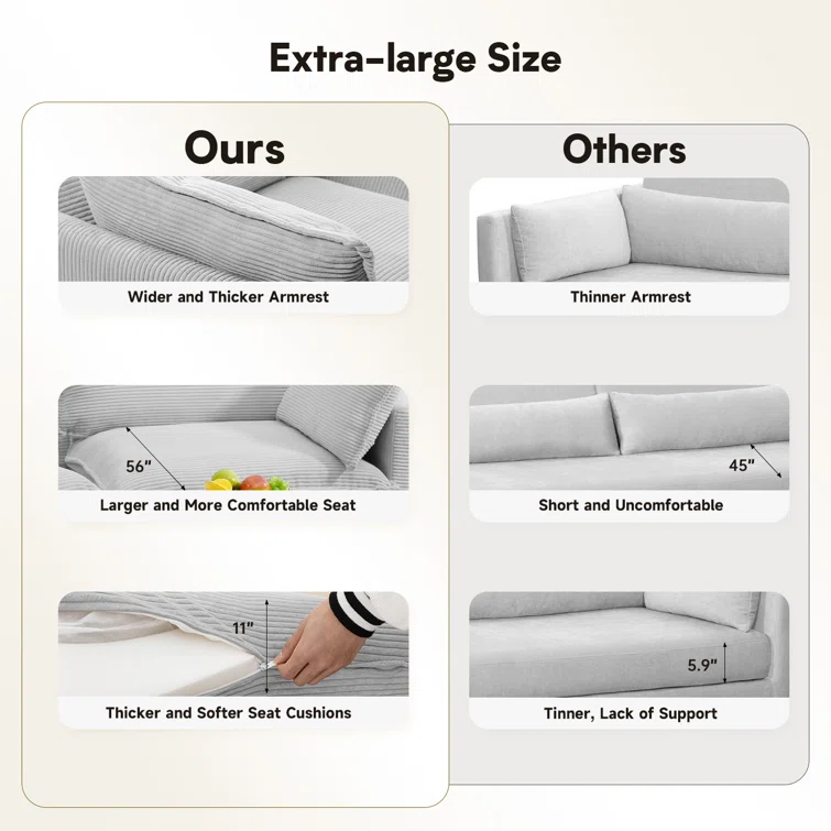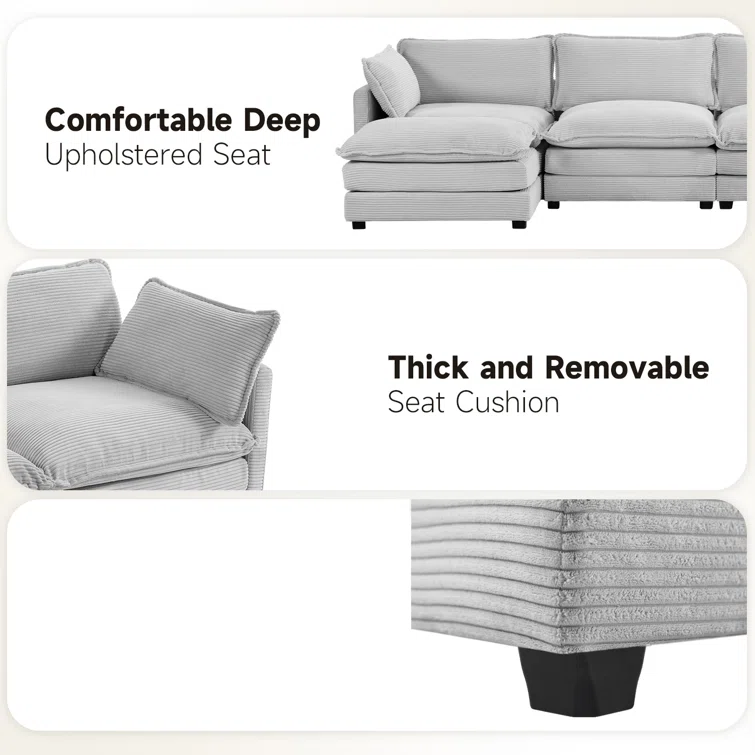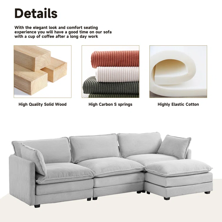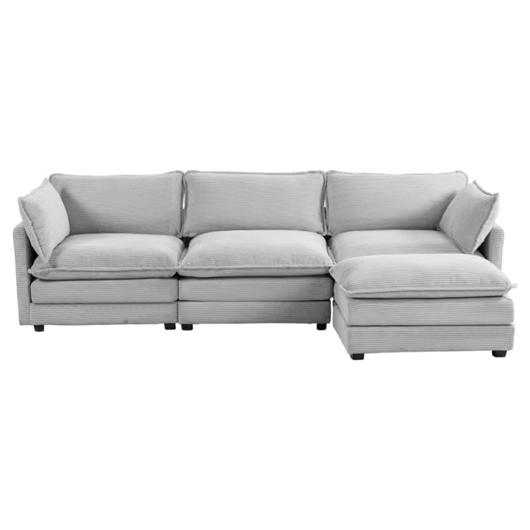 Redenius 4-Piece 112'' Upholstered Corduroy L-Shape Sectional