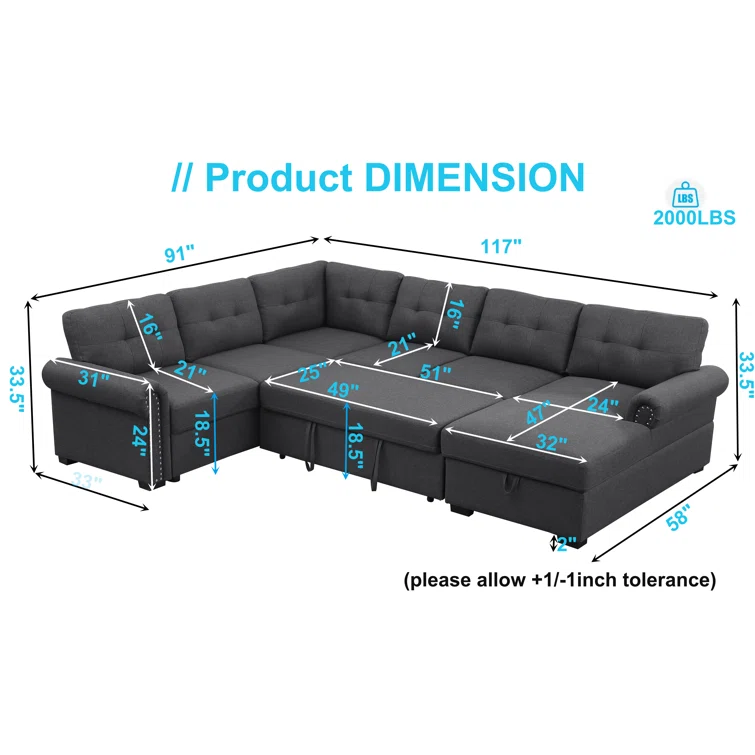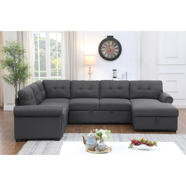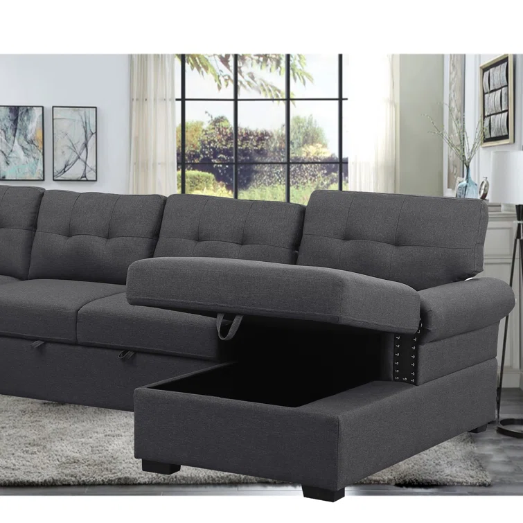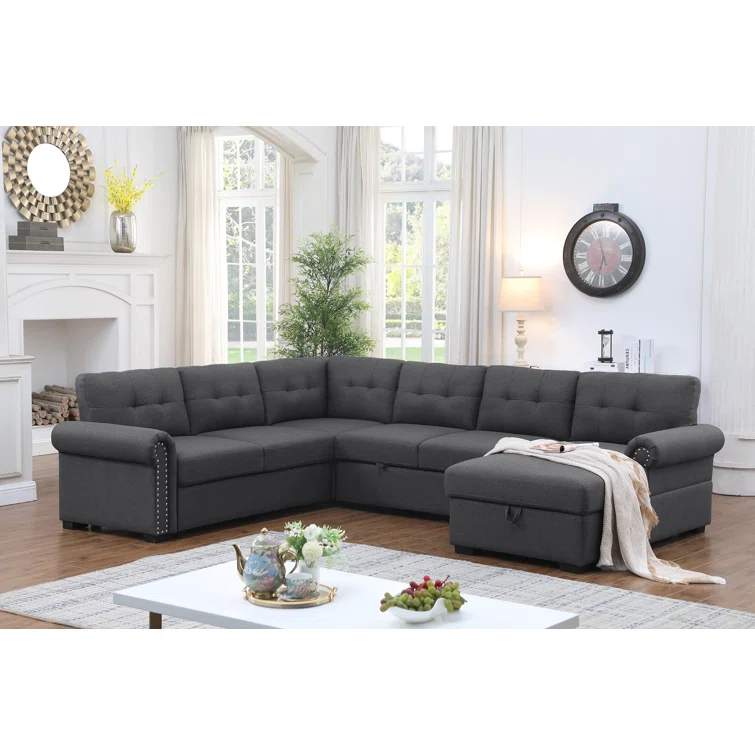 Nazlije Modular Upholstered Pull-Out Sleeper Sectional Chaise with Storage