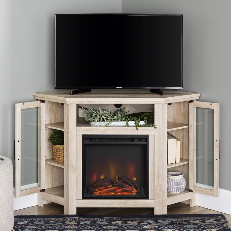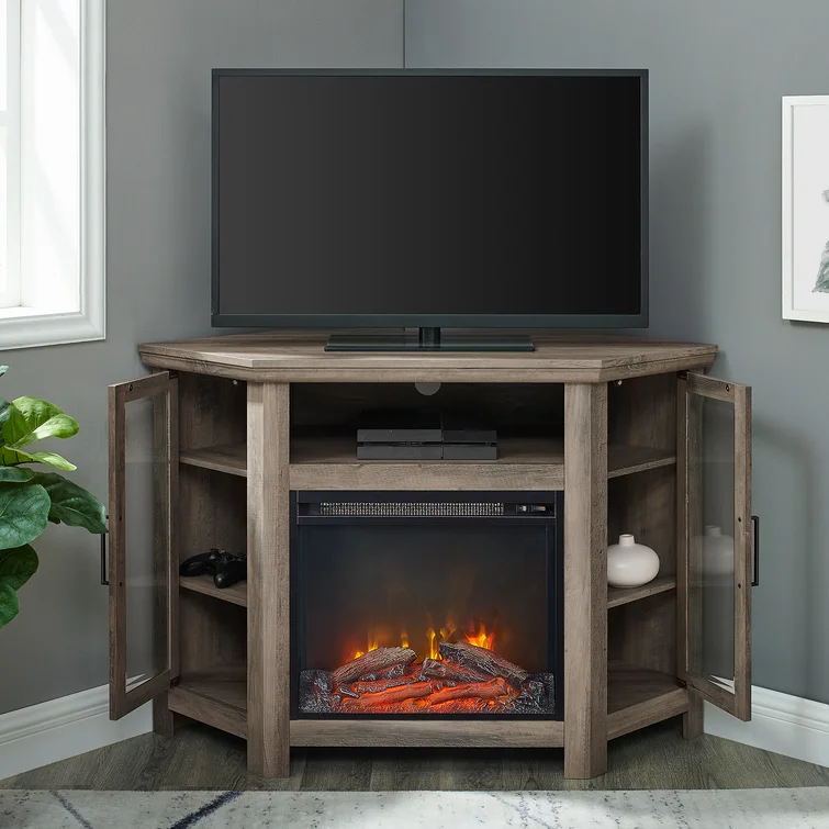 Euripides TV Stand for TVs up to 50" with Electric Fireplace Included