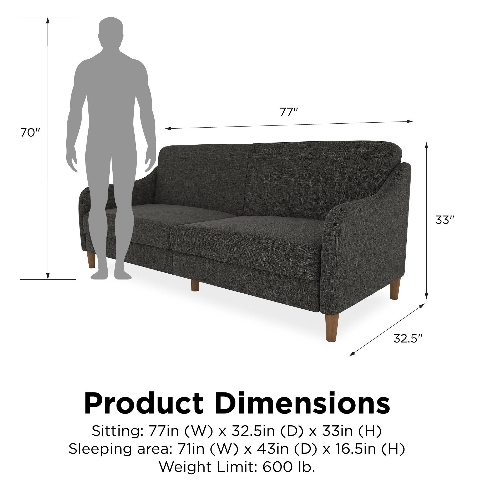 Dingler 77" Round Arm Convertible Sofa