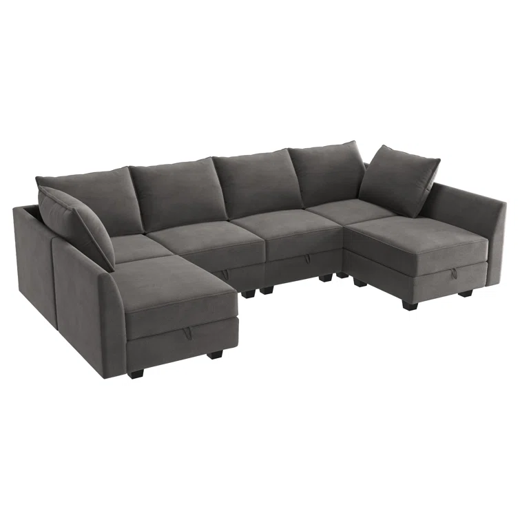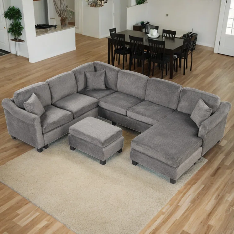 6 - Person Upholstered U-Shaped Modular Sectional Couch with Chaise