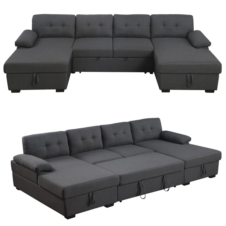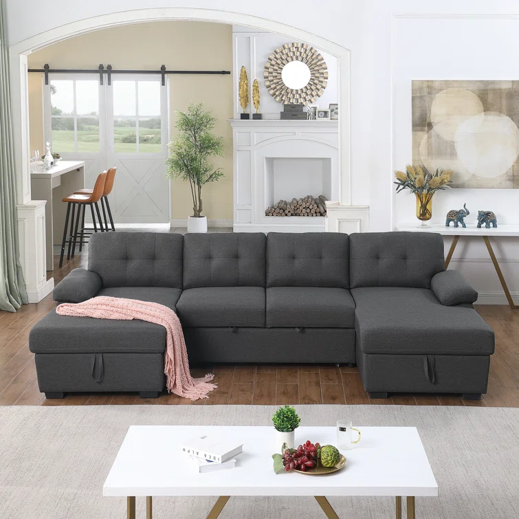 Micia Symmetrical Upholstered Sleeper Sectional Sofa and Chaise