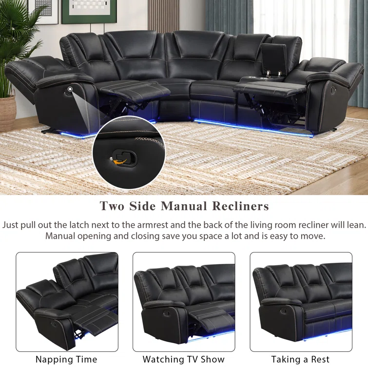 Yaniah Manual Reclining Sectional Sofa Set with LED Strips and Cup Holders