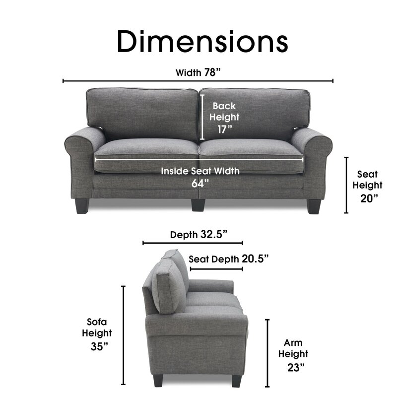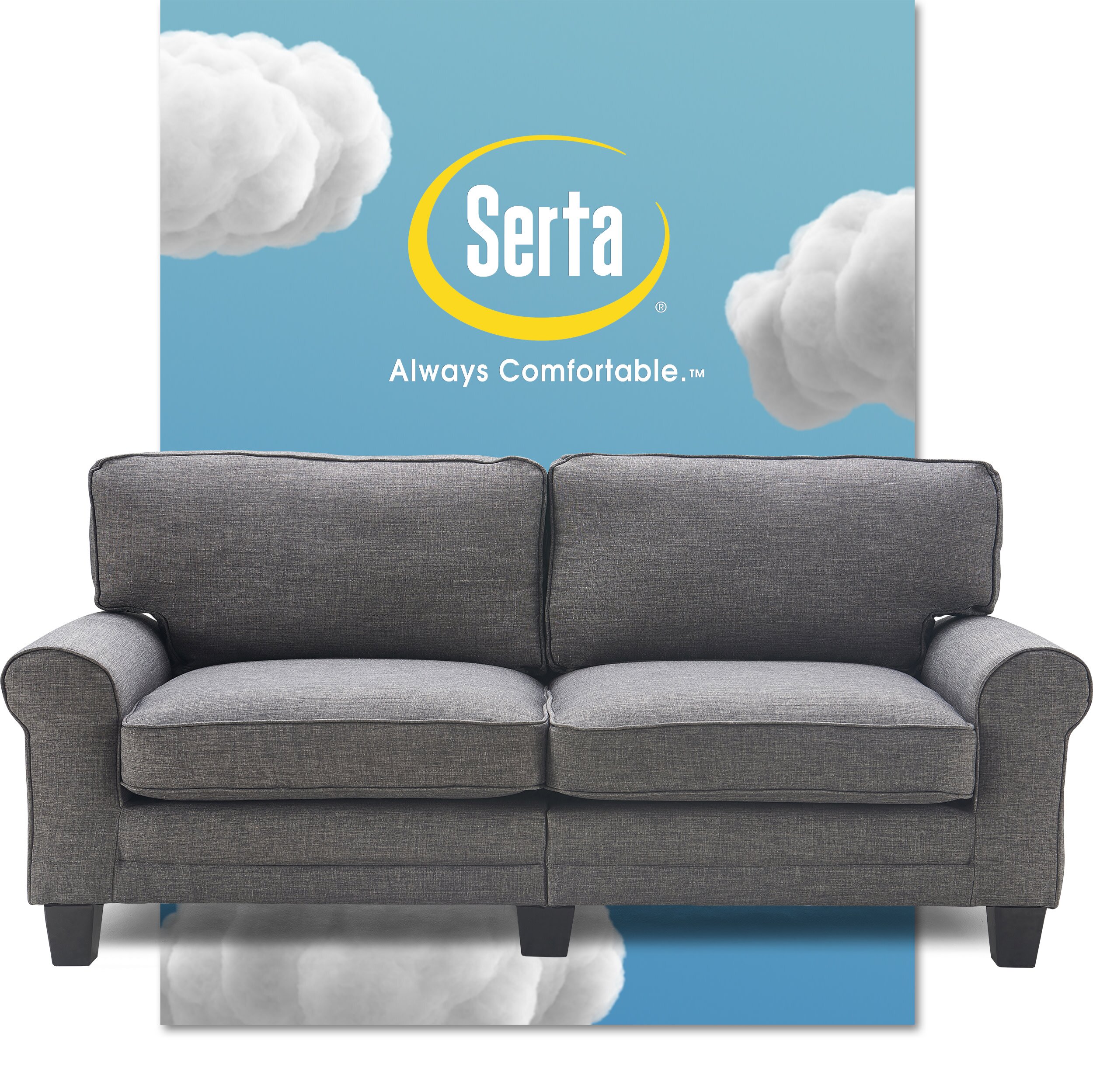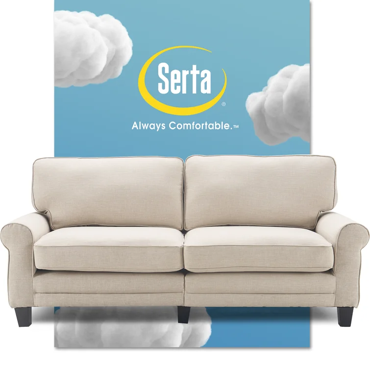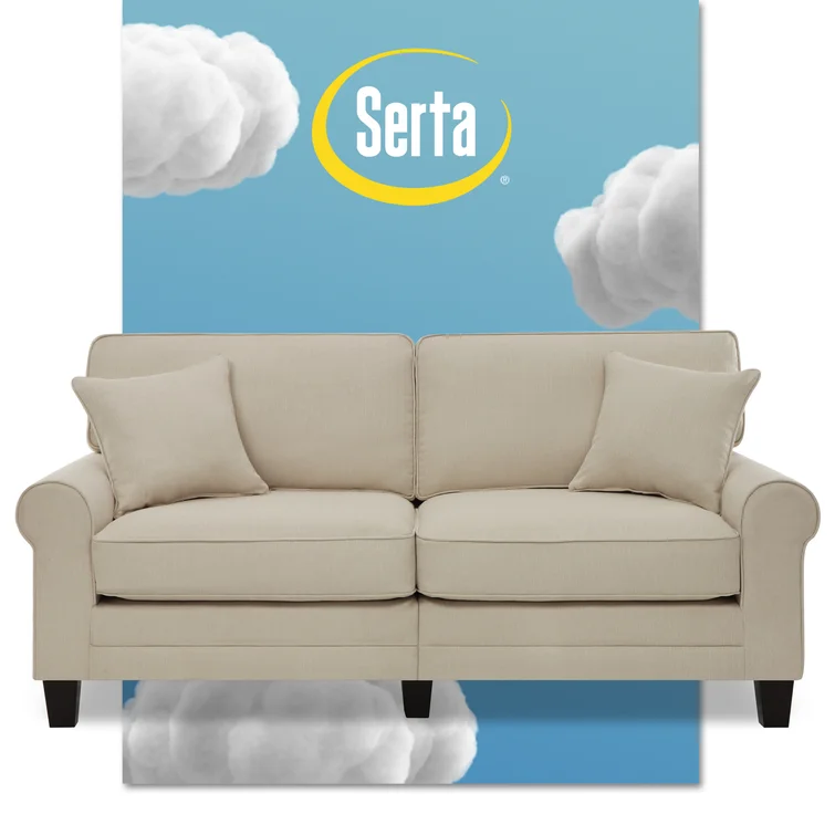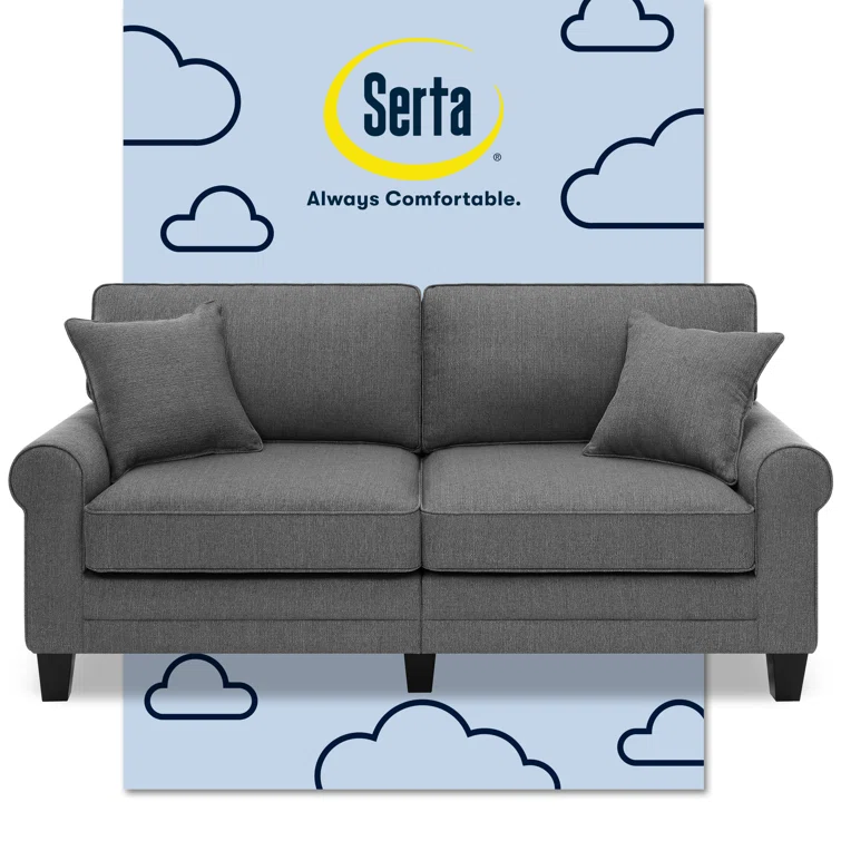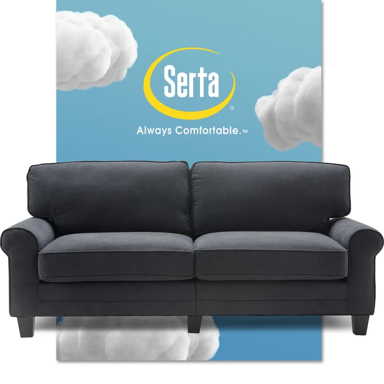 Serta Copenhagen 78" Sofa Couch for Two People with Pillowed Back Cushions and Rounded Arms