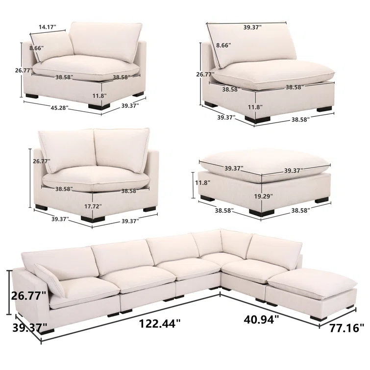 Hockensmith 6 - Piece 161" Wide Modular Corner Sectional With Ottoman