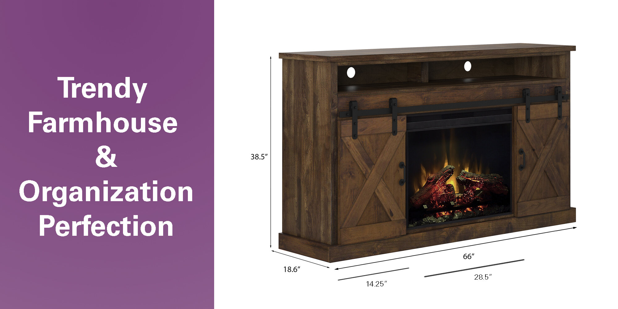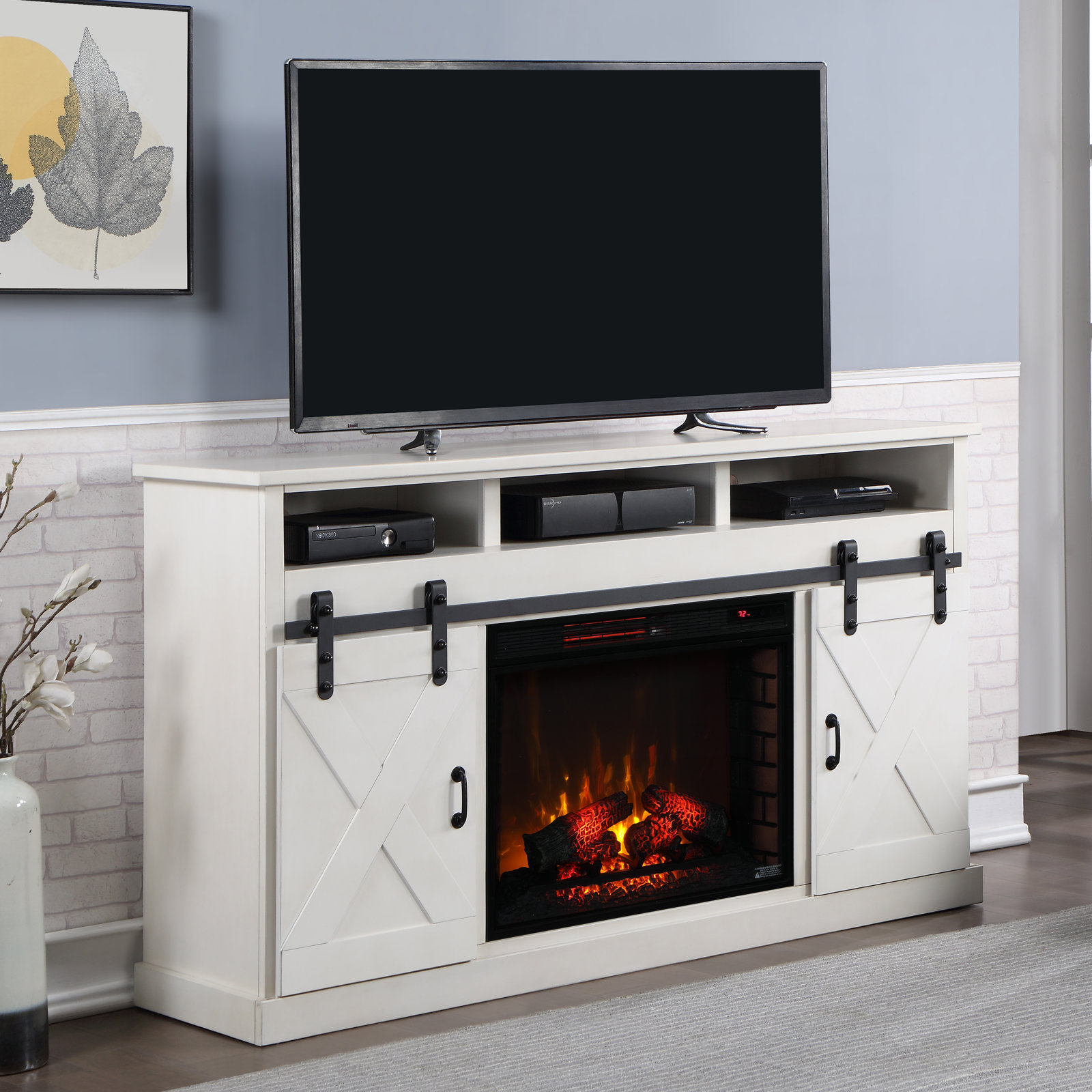 Arfaan Media Console with Electric Fireplace Included