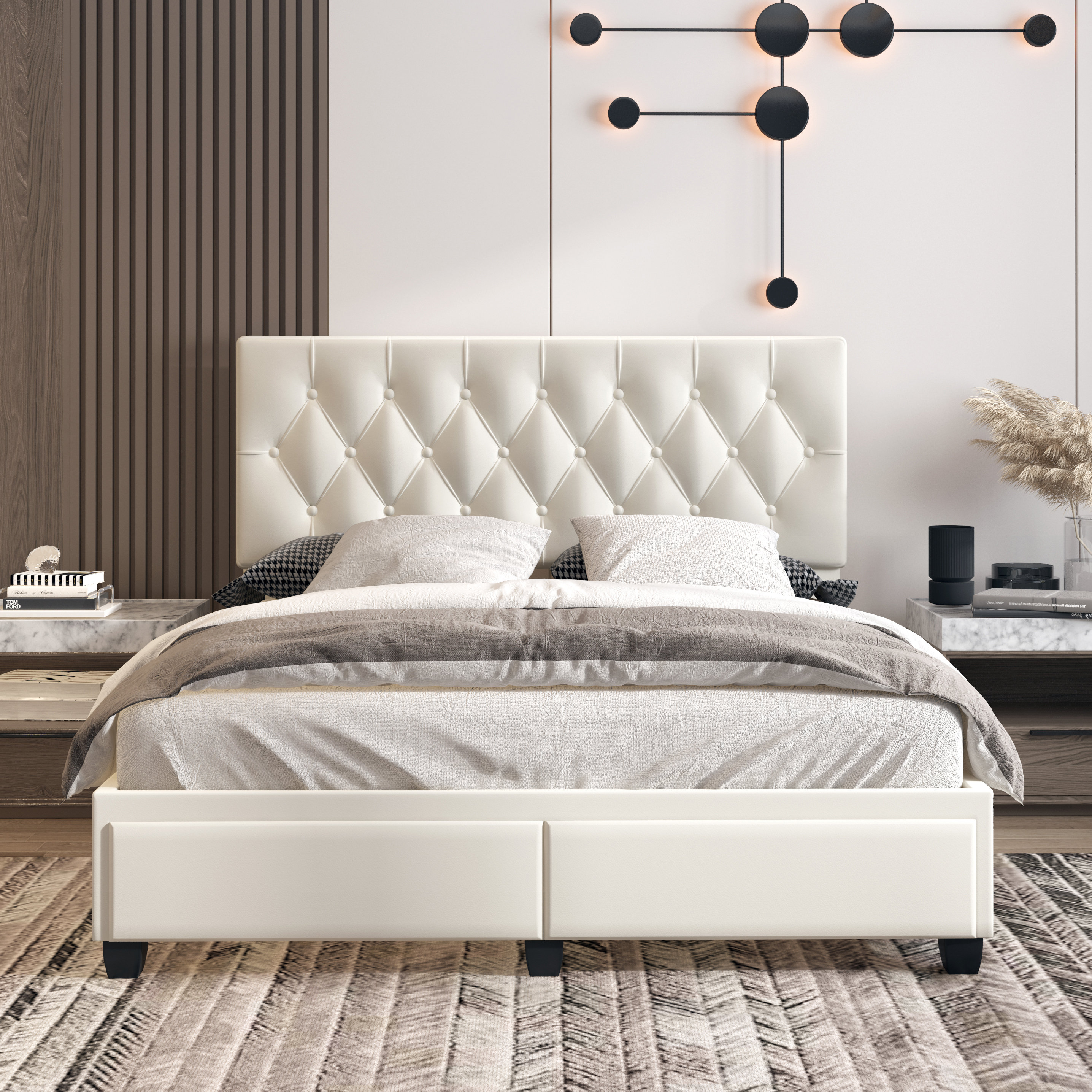 Verona Faux Leather Upholstered Tufted Platform Storage Bed Frame - White