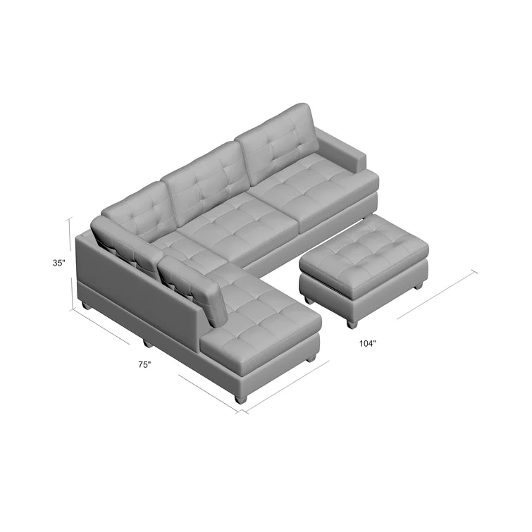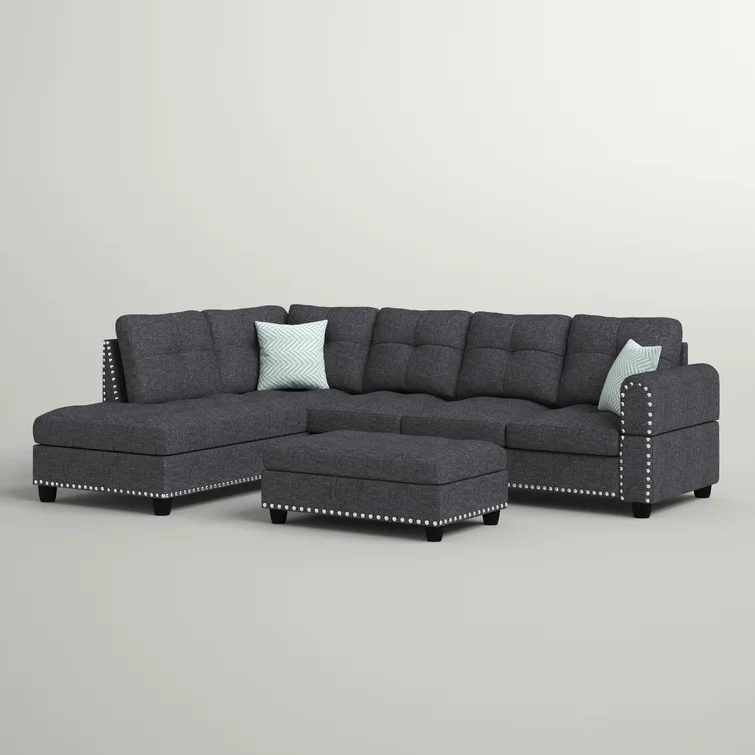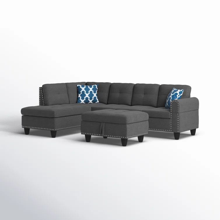 Alger 98" Wide Left Hand Facing Sofa & Chaise with Ottoman