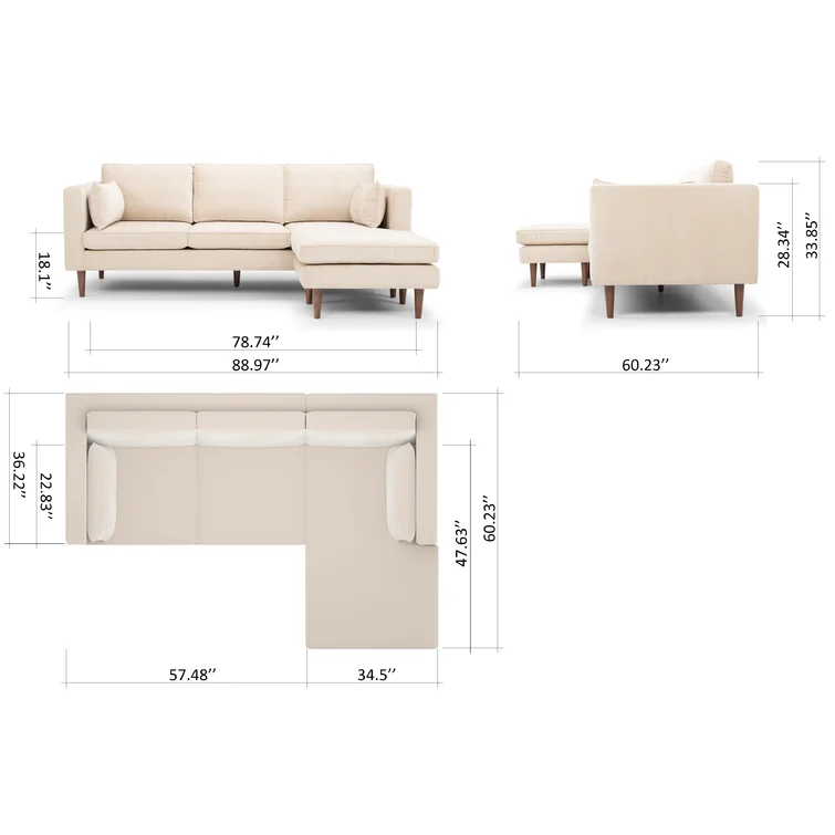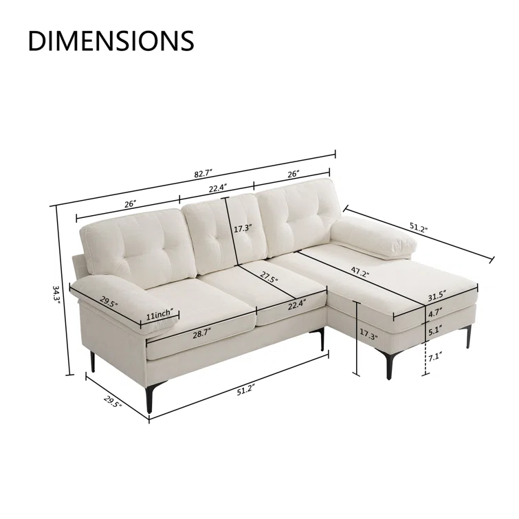 Rhylin 82.7'' Reversible Upholstered Sectional Sofa Chaise