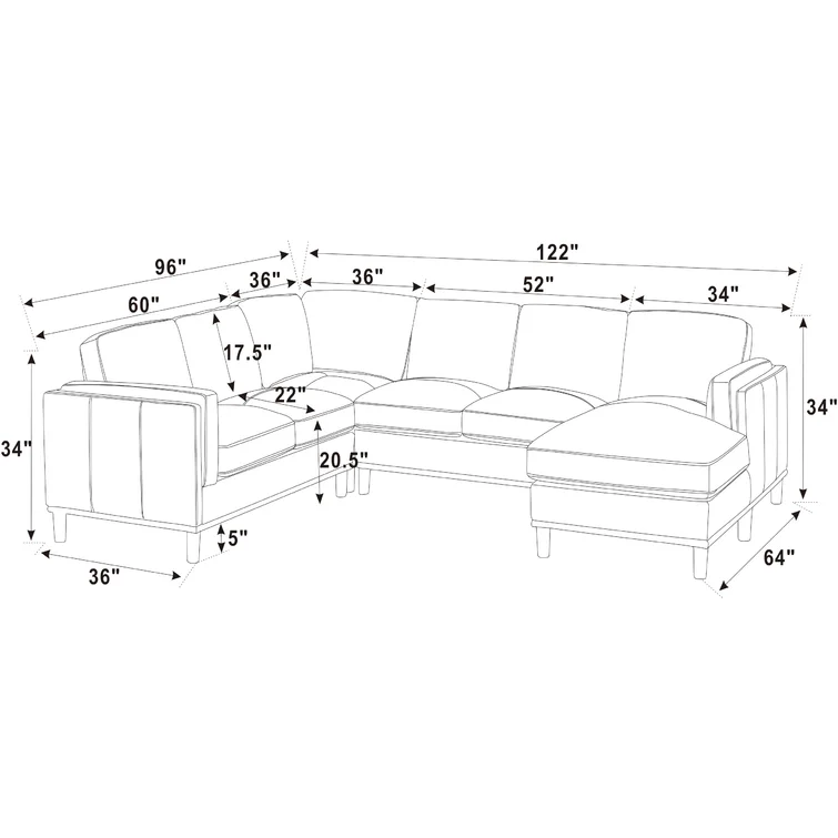 Trini 5 - Piece Upholstered Sectional