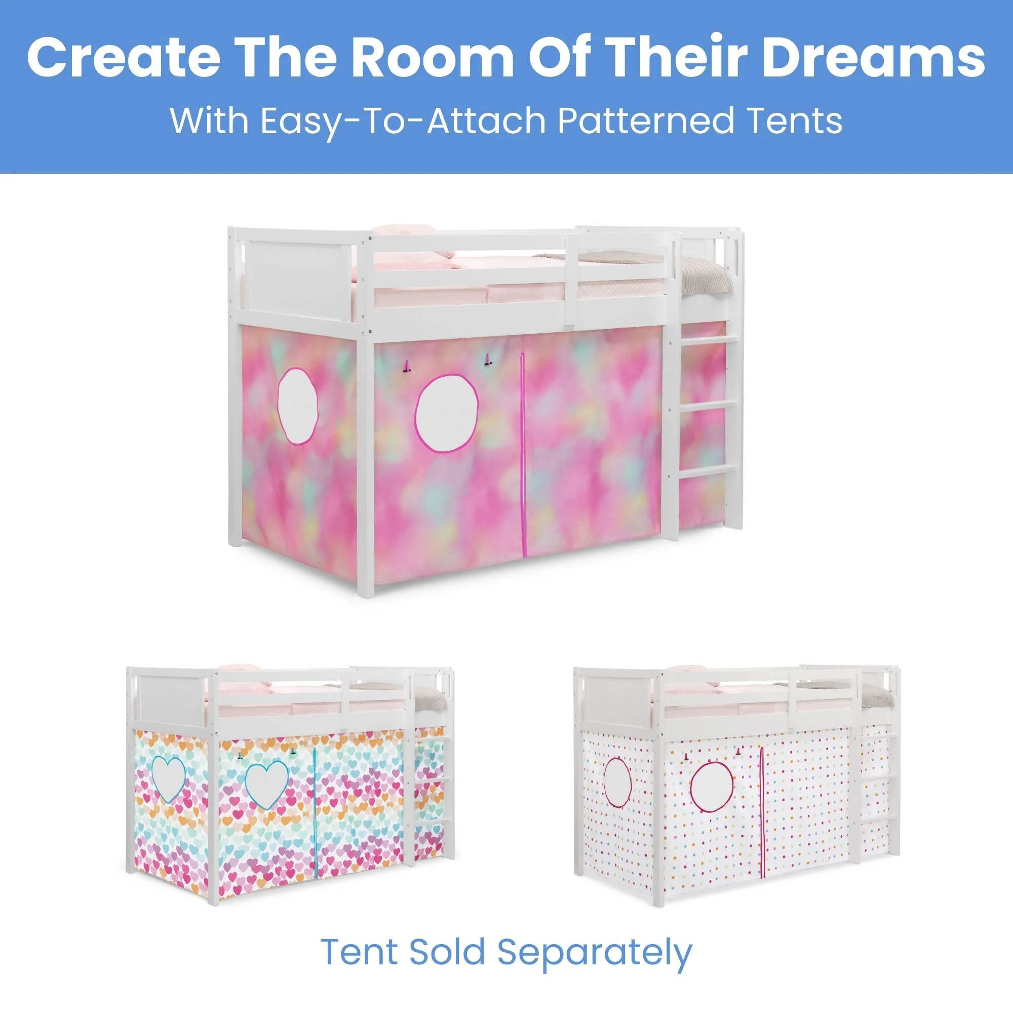 Castle Frame Bed Wood Loft Bed Loft Bed Convertible To Mini Playground with Pink Tent and Tower, Child Bed Tent