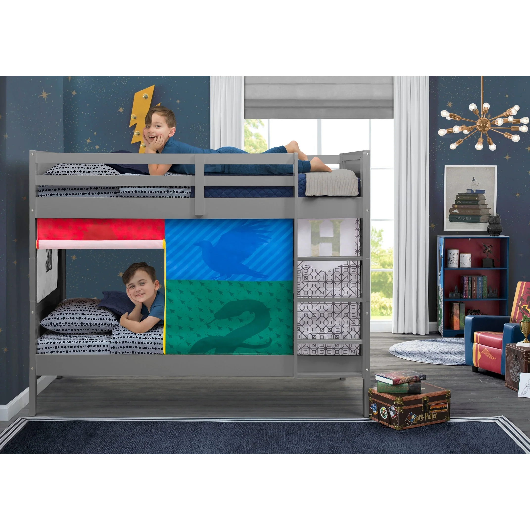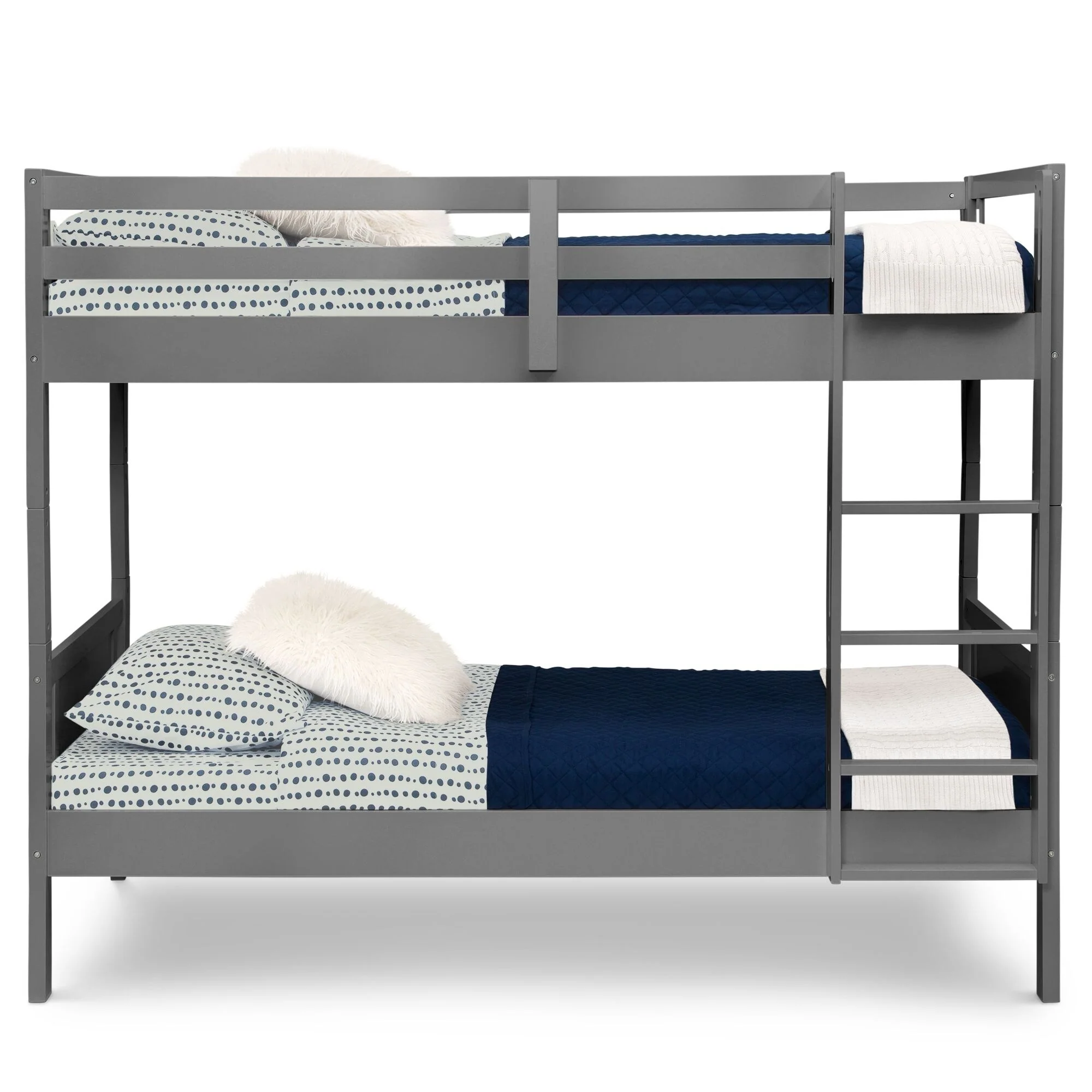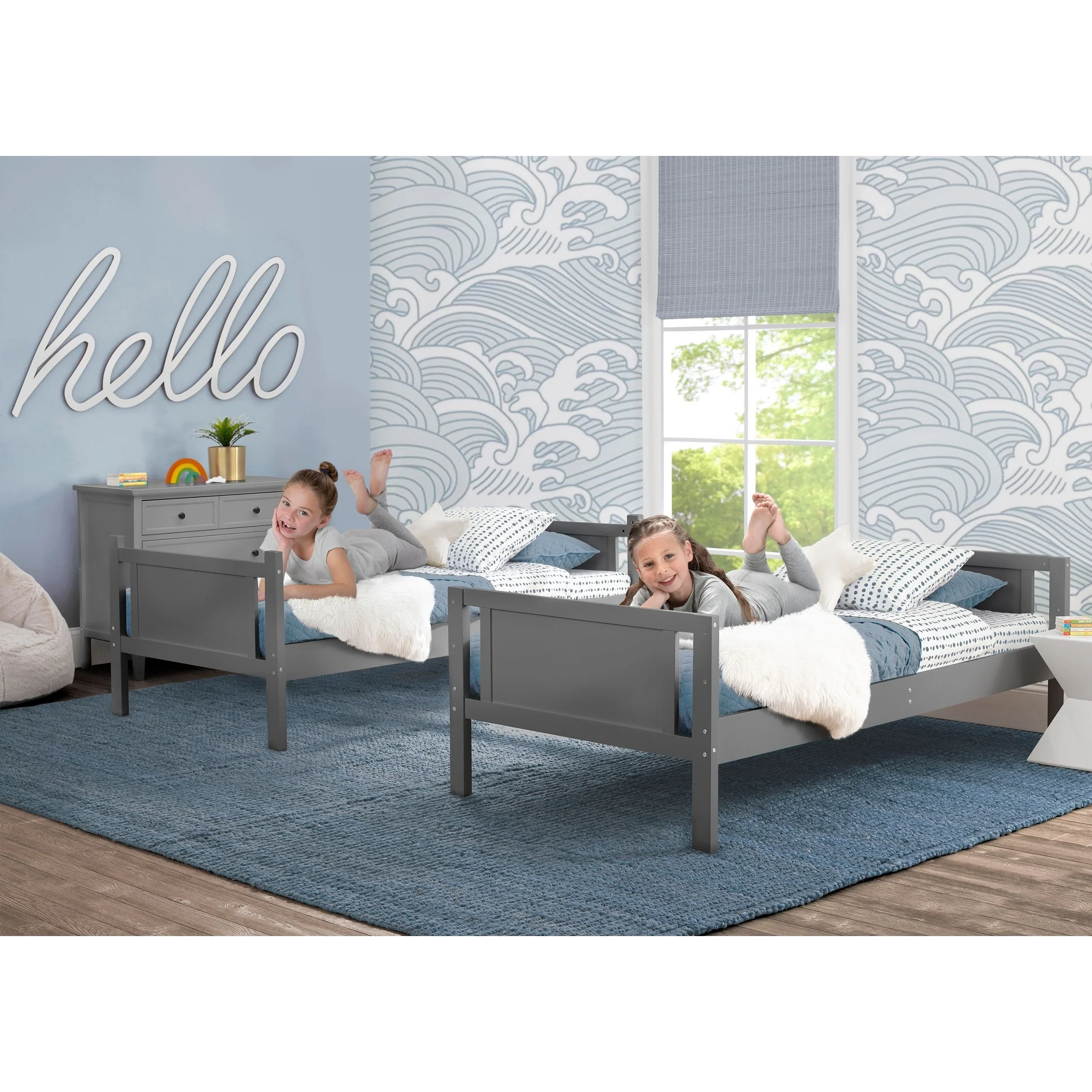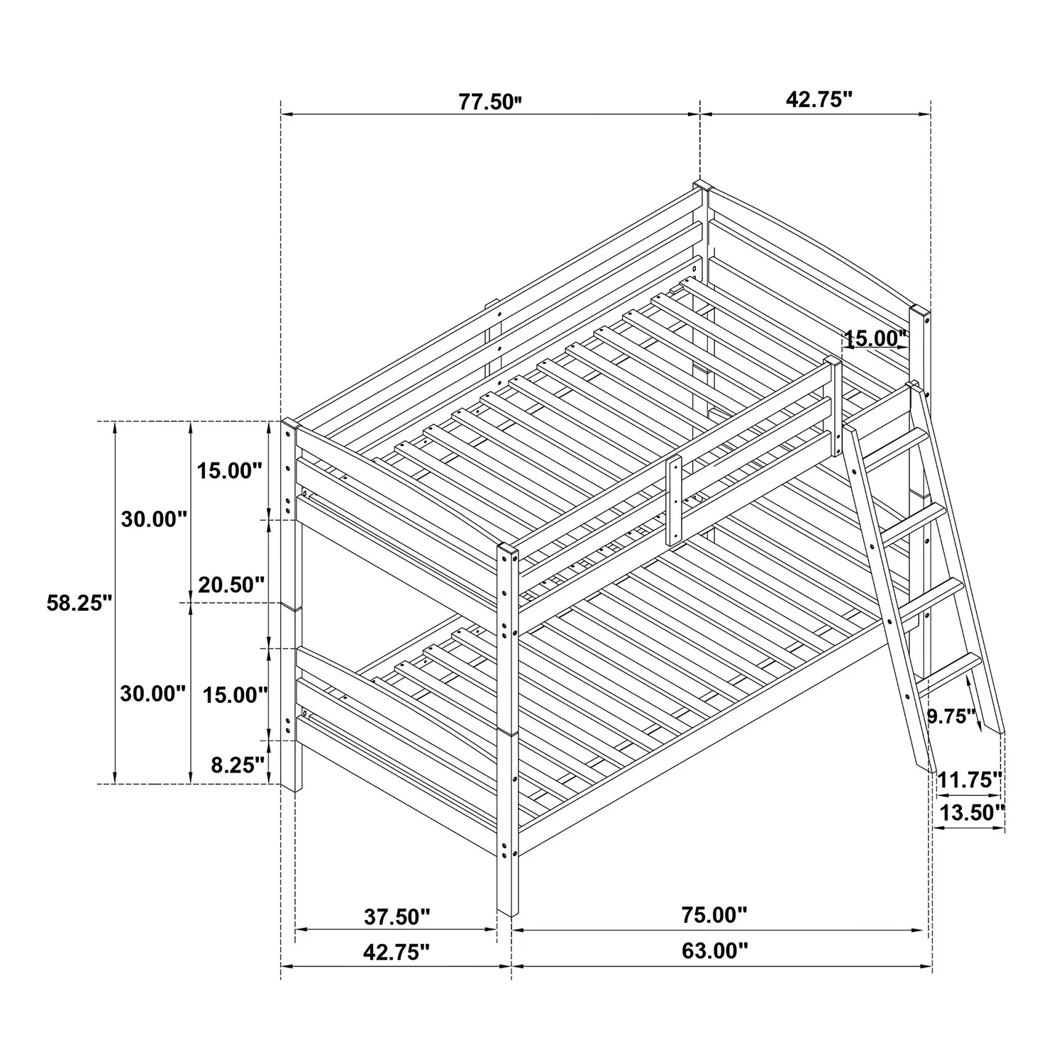 Wooden Twin Over Twin Bunk Bed with Ladder in Grey