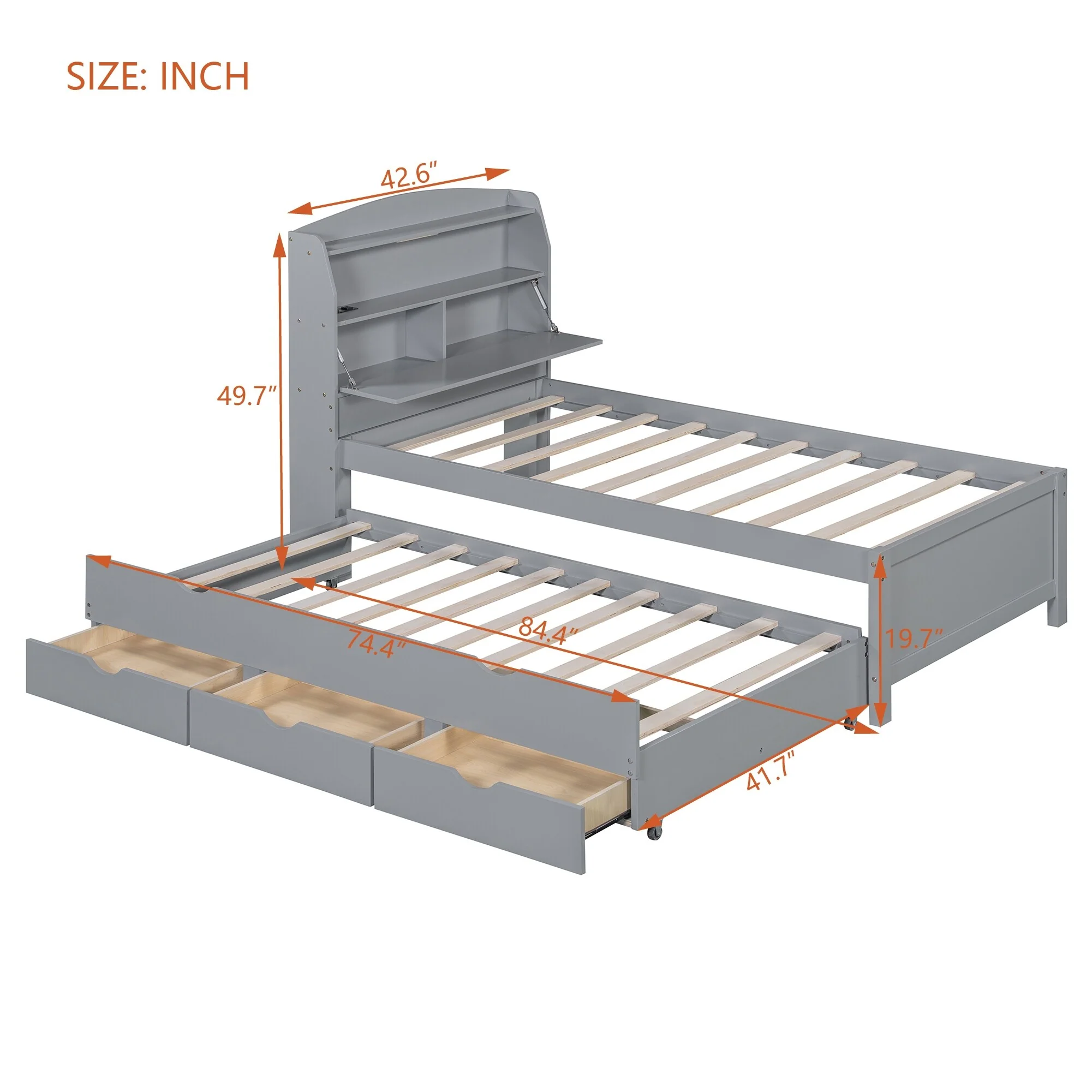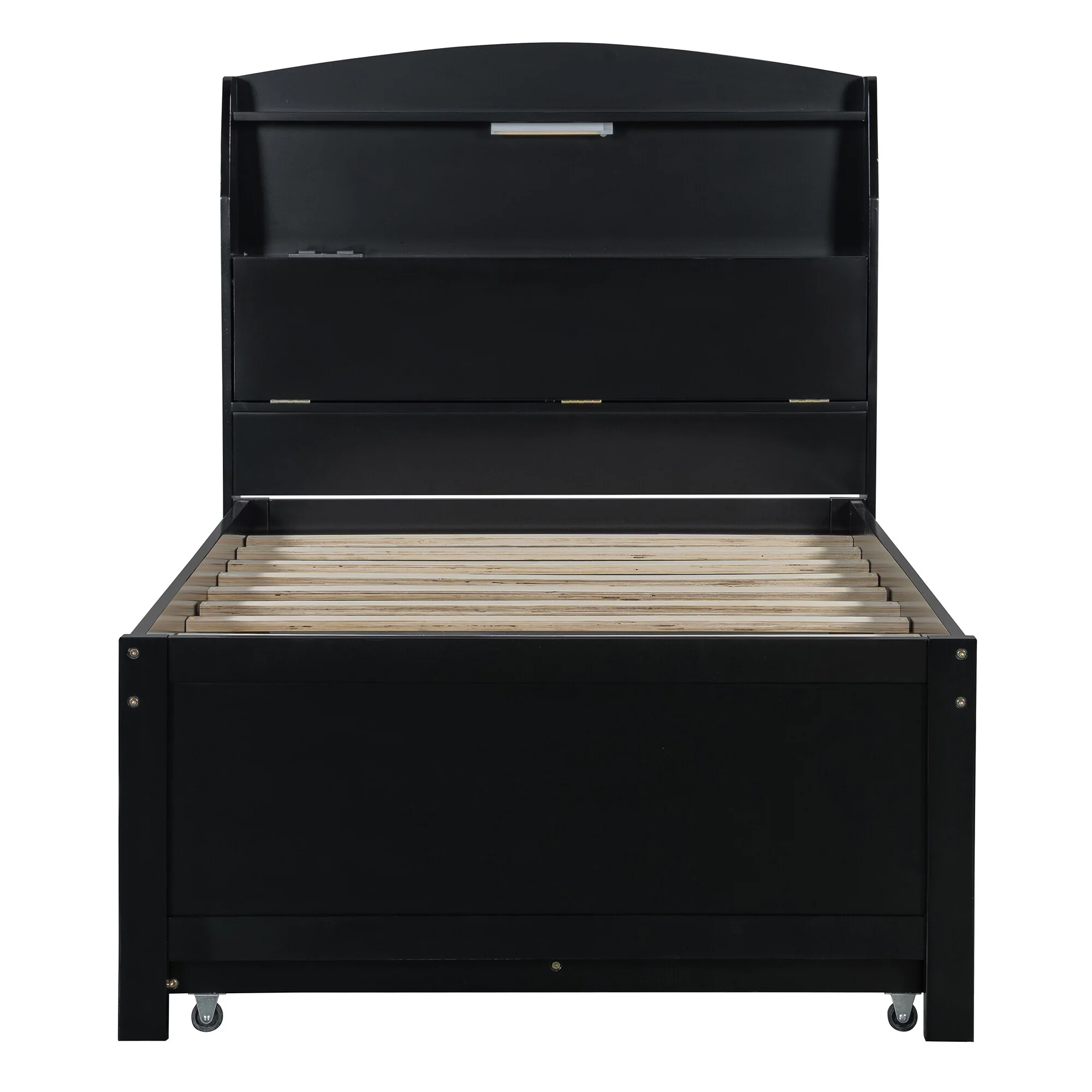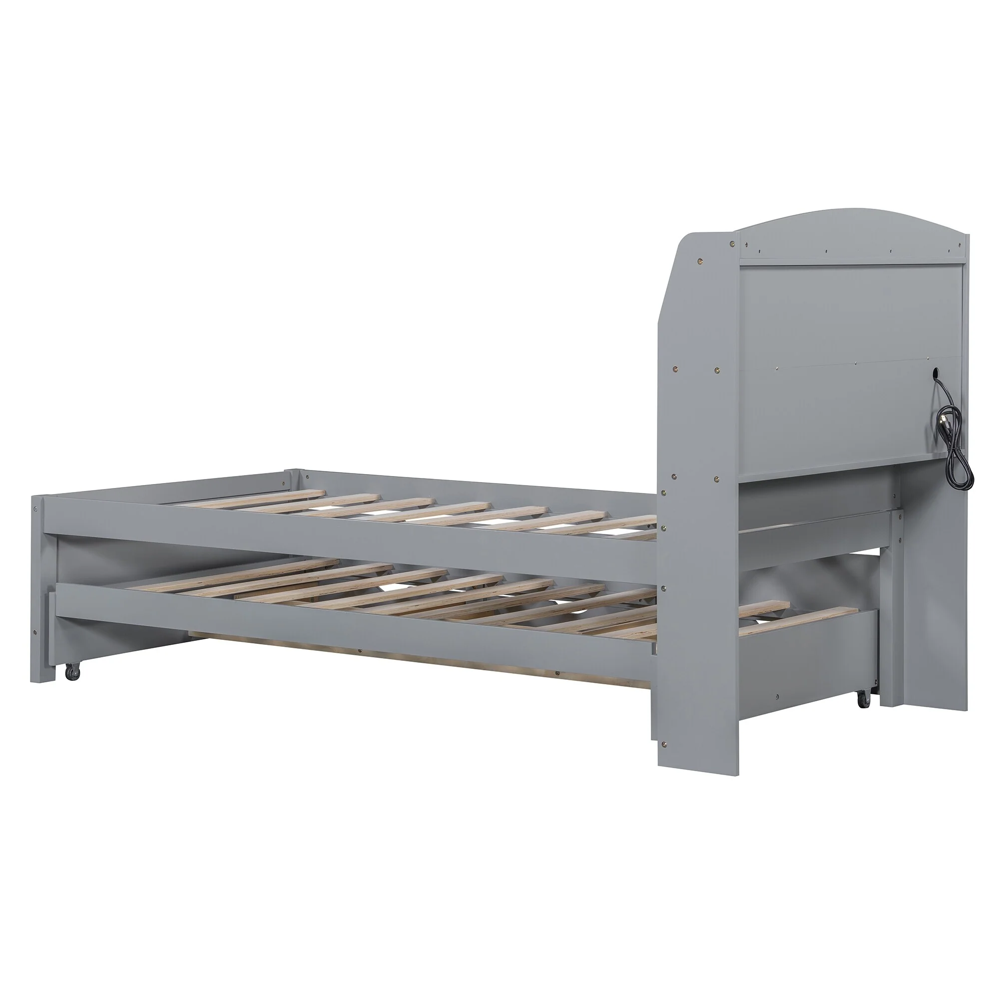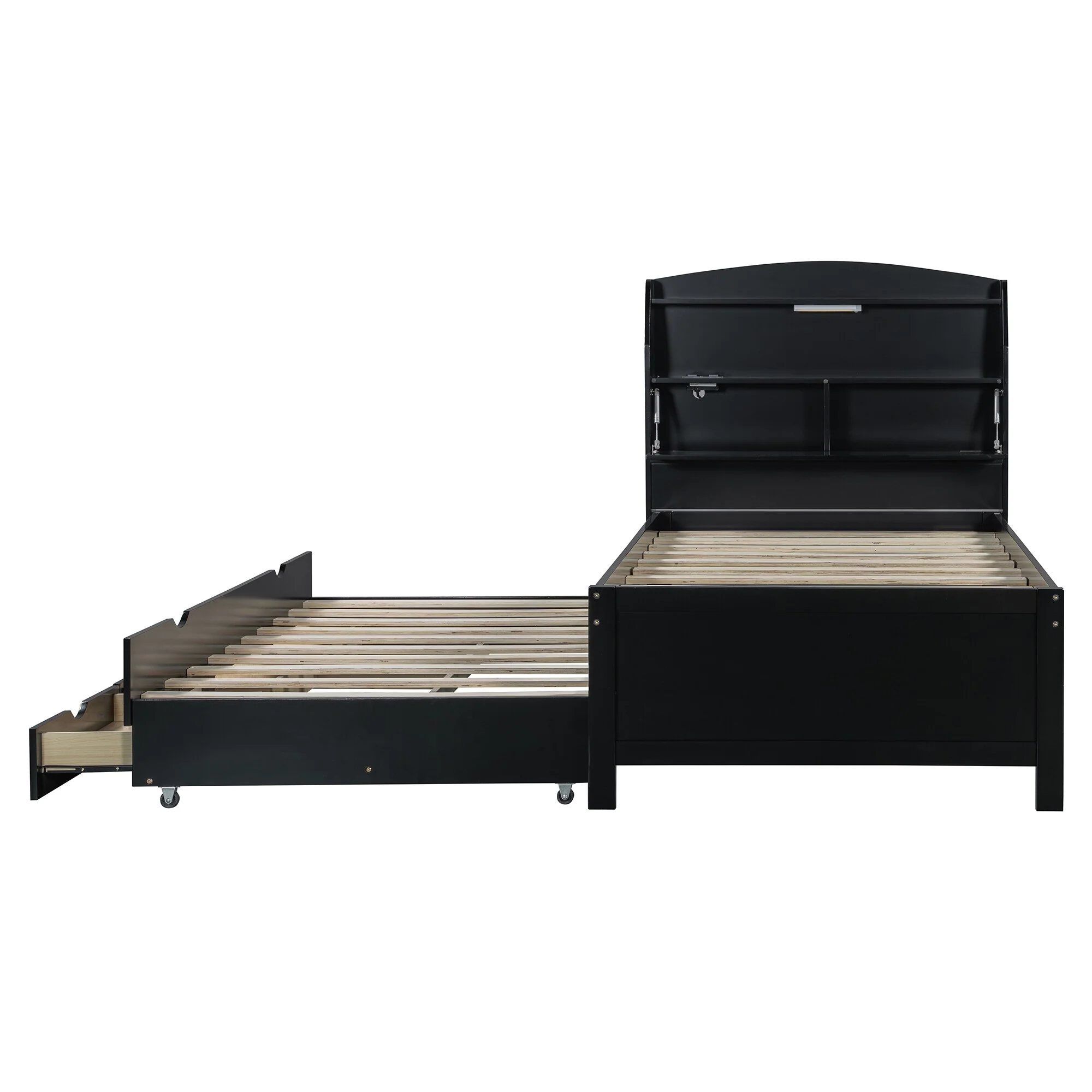 Wooden Twin Size Daybed with Trundle and USB Ports, Storage Shelf