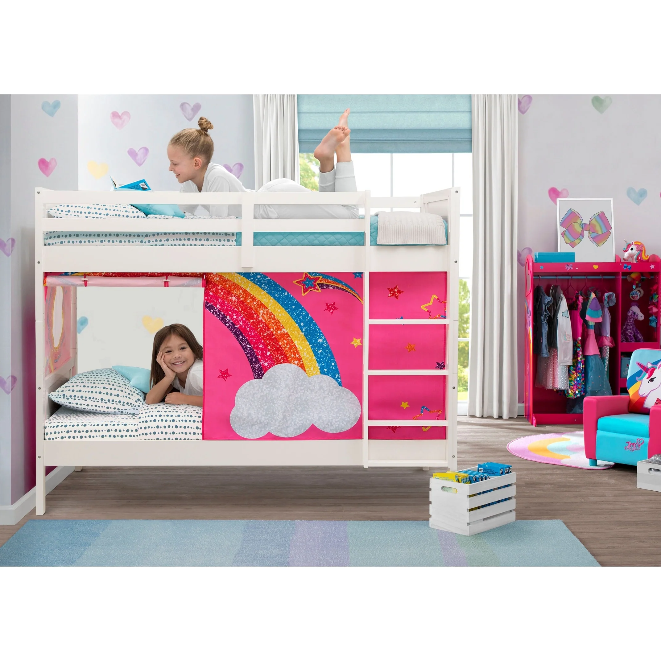 Full of Childlike Charm Bunk Bed with Tent, Twin Over Twin Wood House Bed