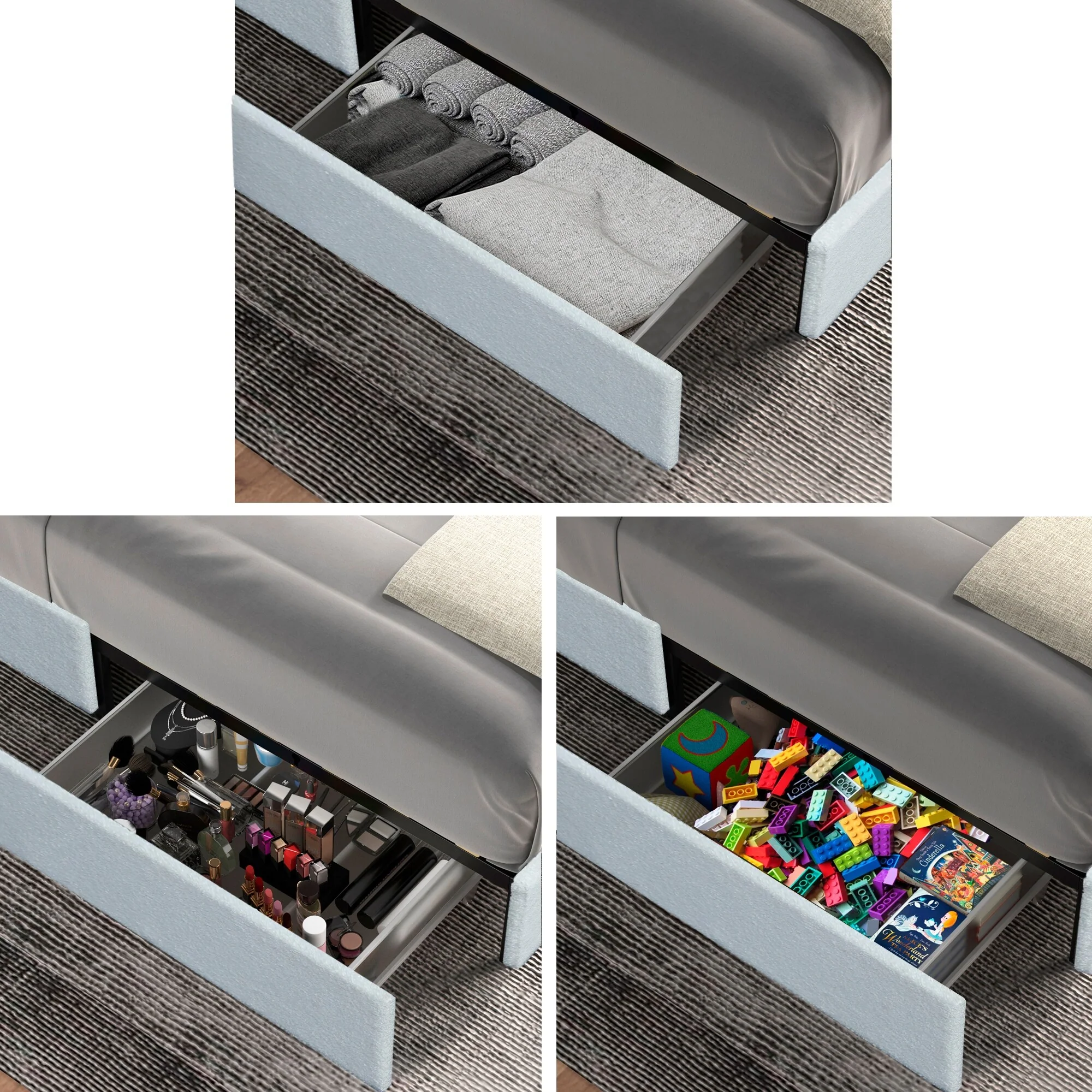 Blue Velvet Queen Bed with Twin XL Trundle and Storage Drawers