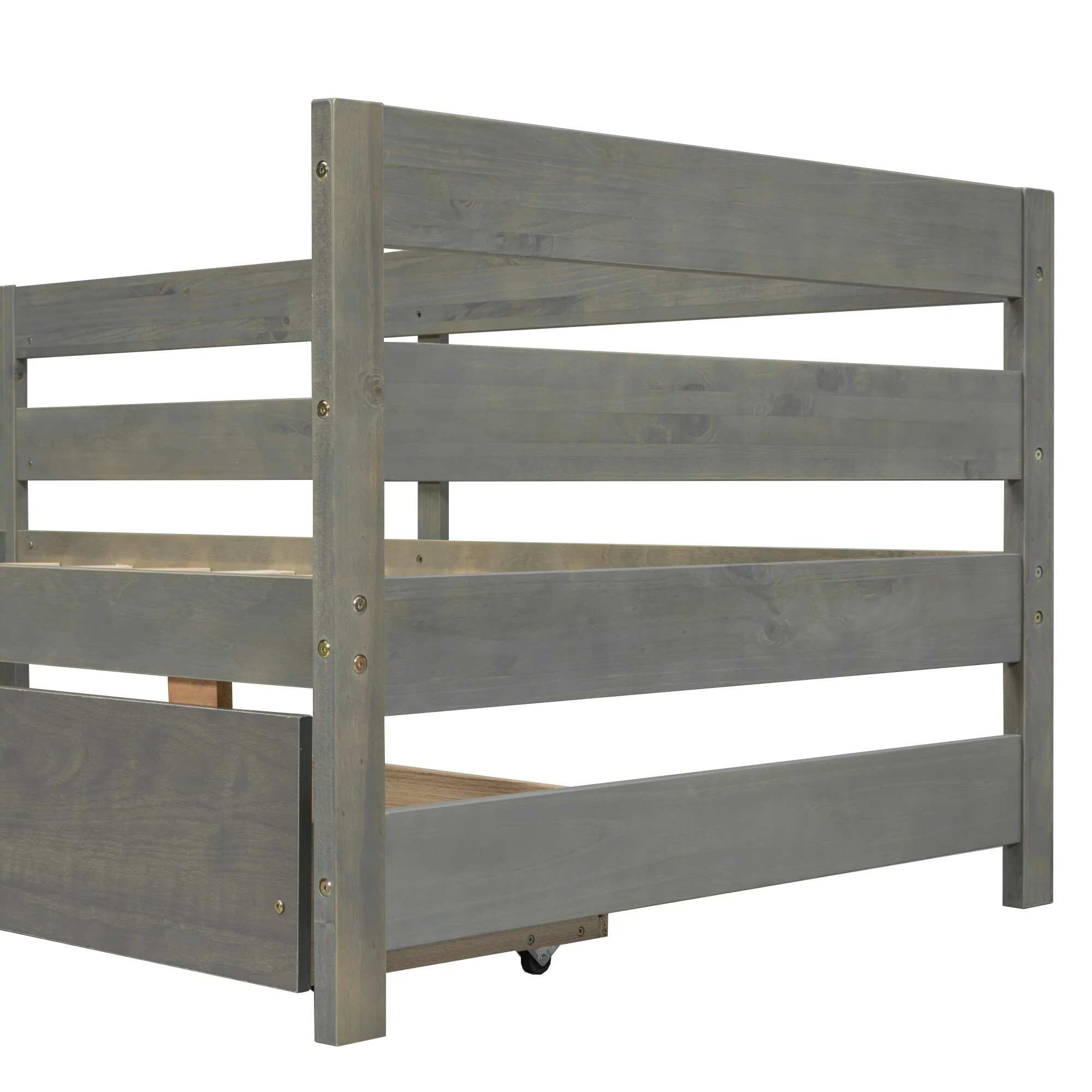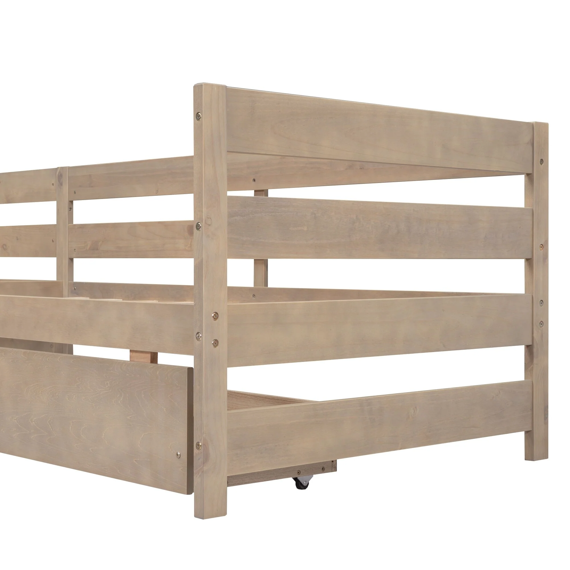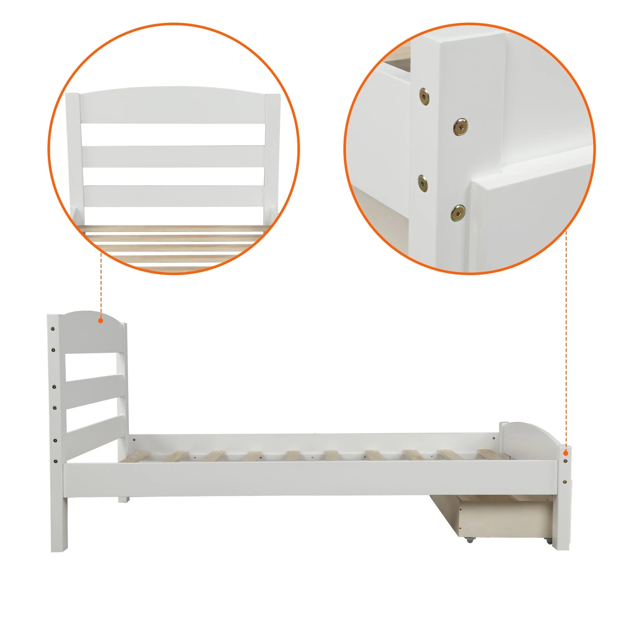 Twin Wood Platform Bed with Storage Drawers, Sturdy Pine Frame
