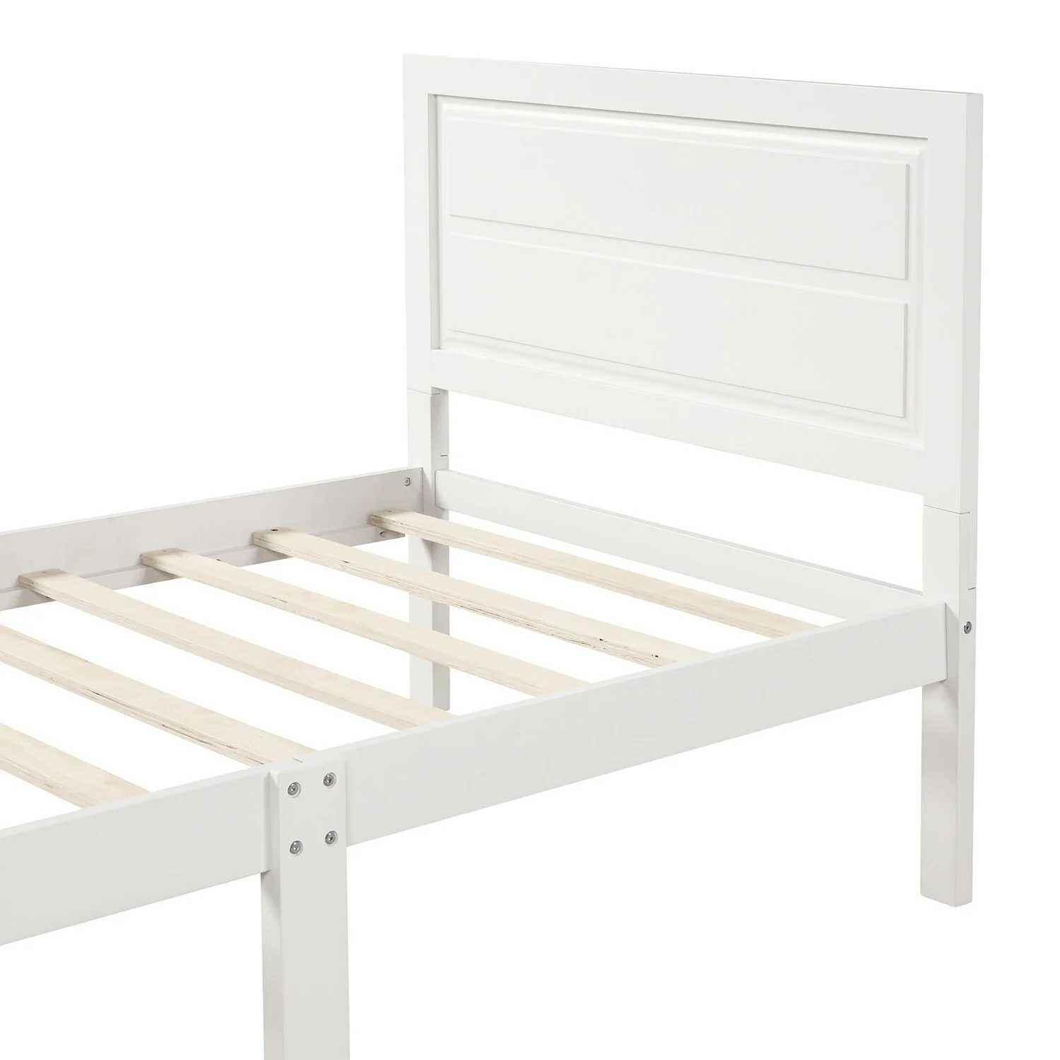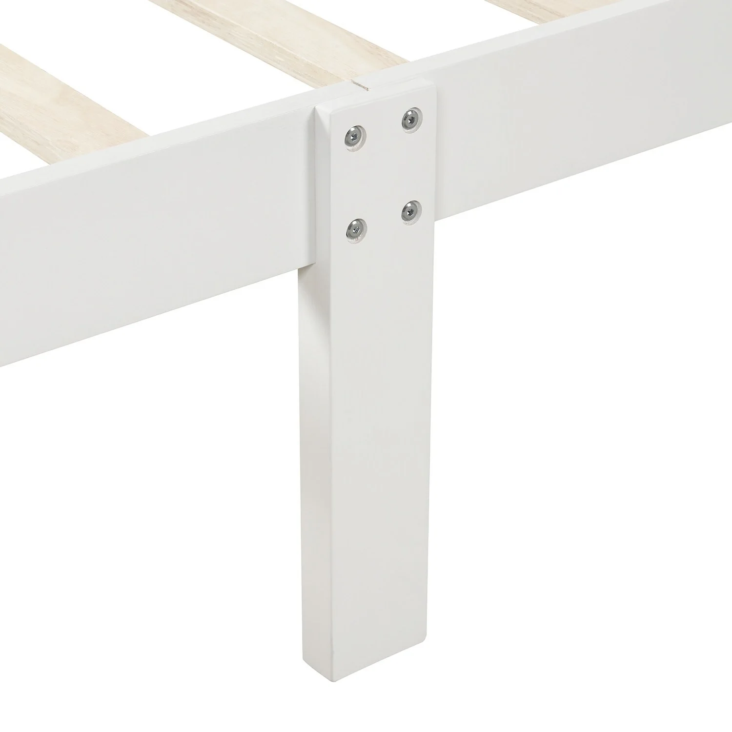 Wooden Queen Size Platform Bed Frame, Solid Pine and MDF with Headboard, Easy Assembly