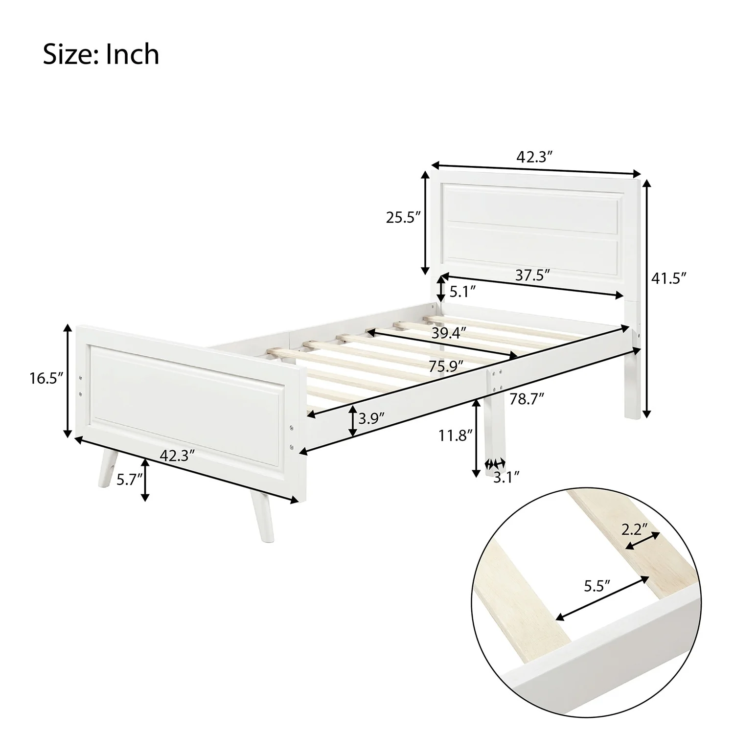 Minimalist Twin Platform Bed with Headboard & Footboard, 10 Slats Support