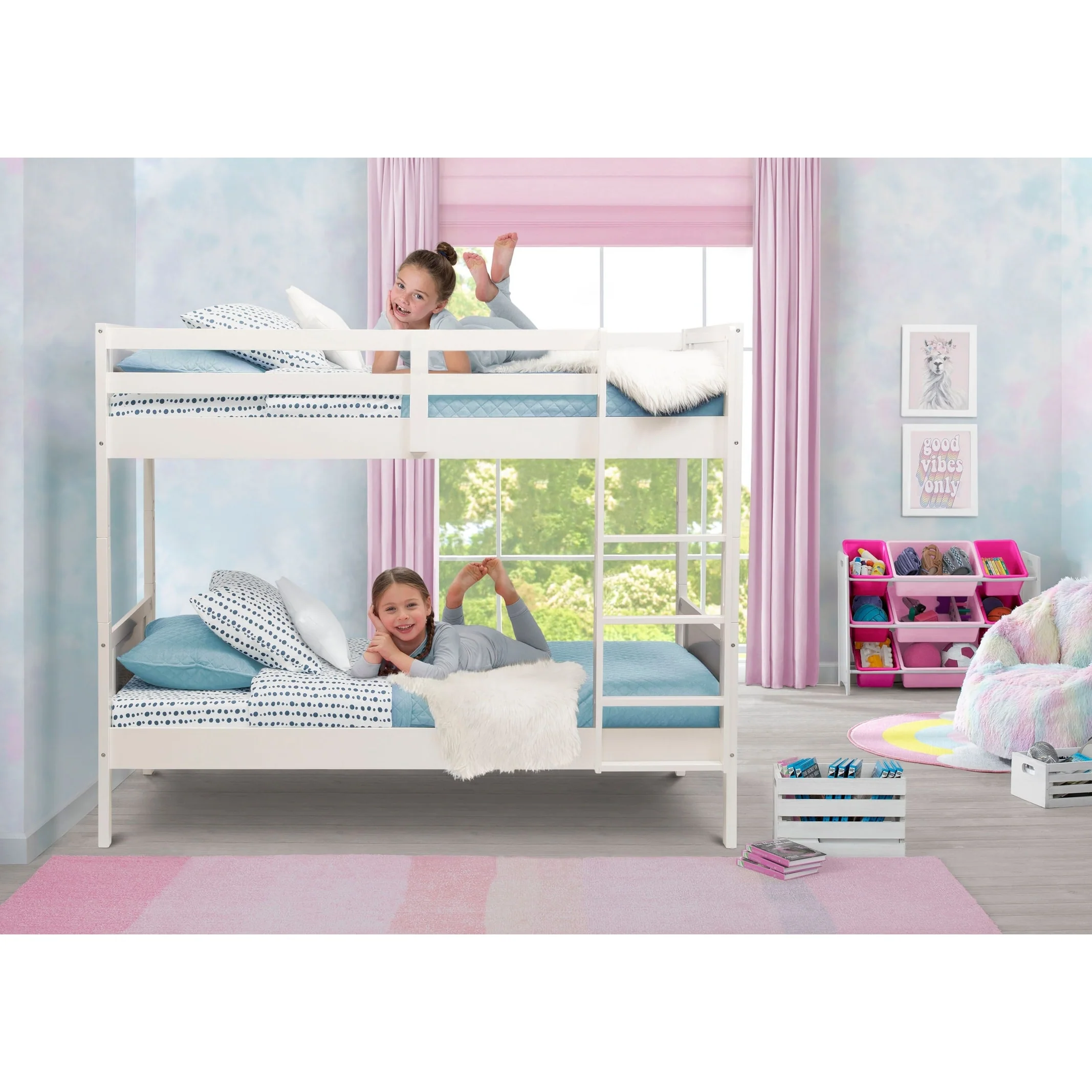 White Metal Bunk Bed Frame for Teens and Adults with Metal Slats