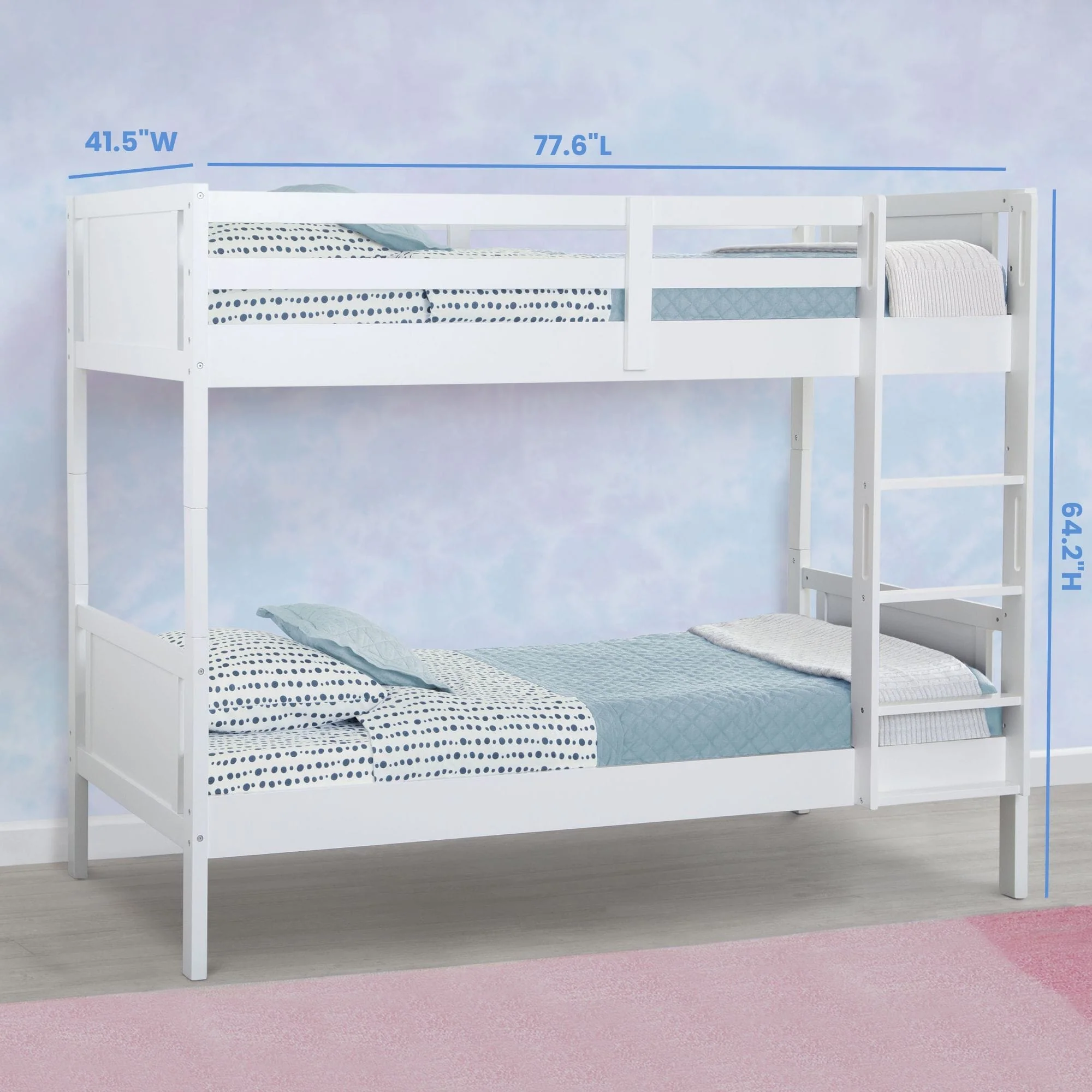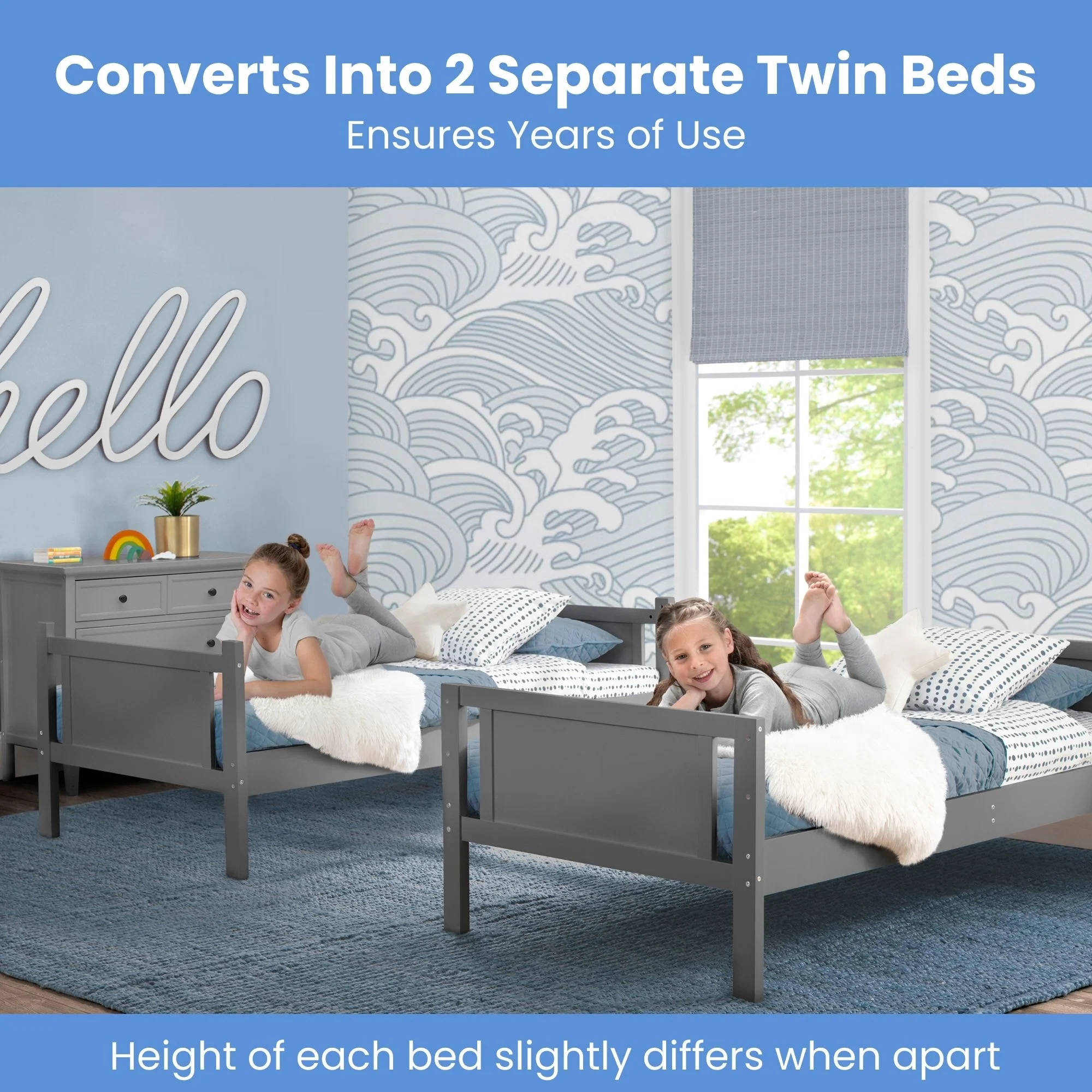 Convertible Twin Over Twin Wood Bunk Bed With Ladder And Guardrails