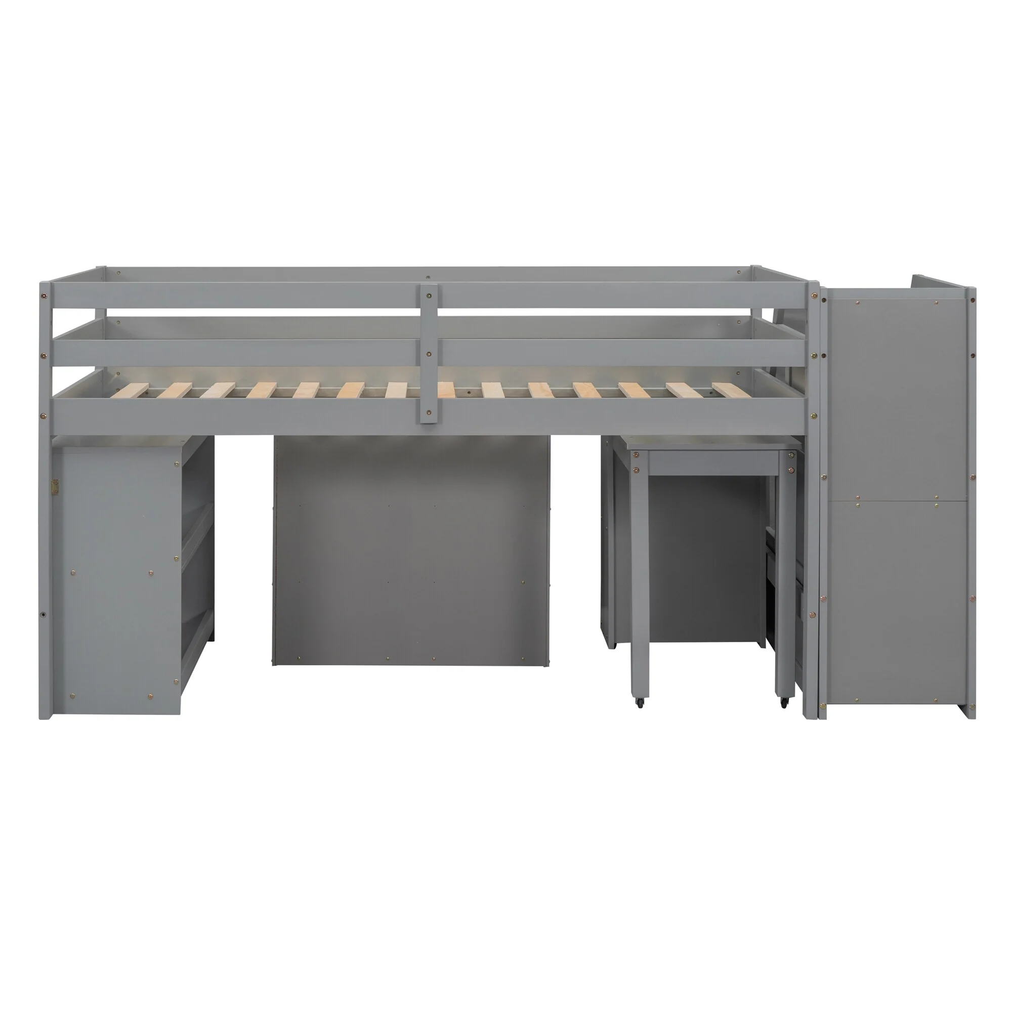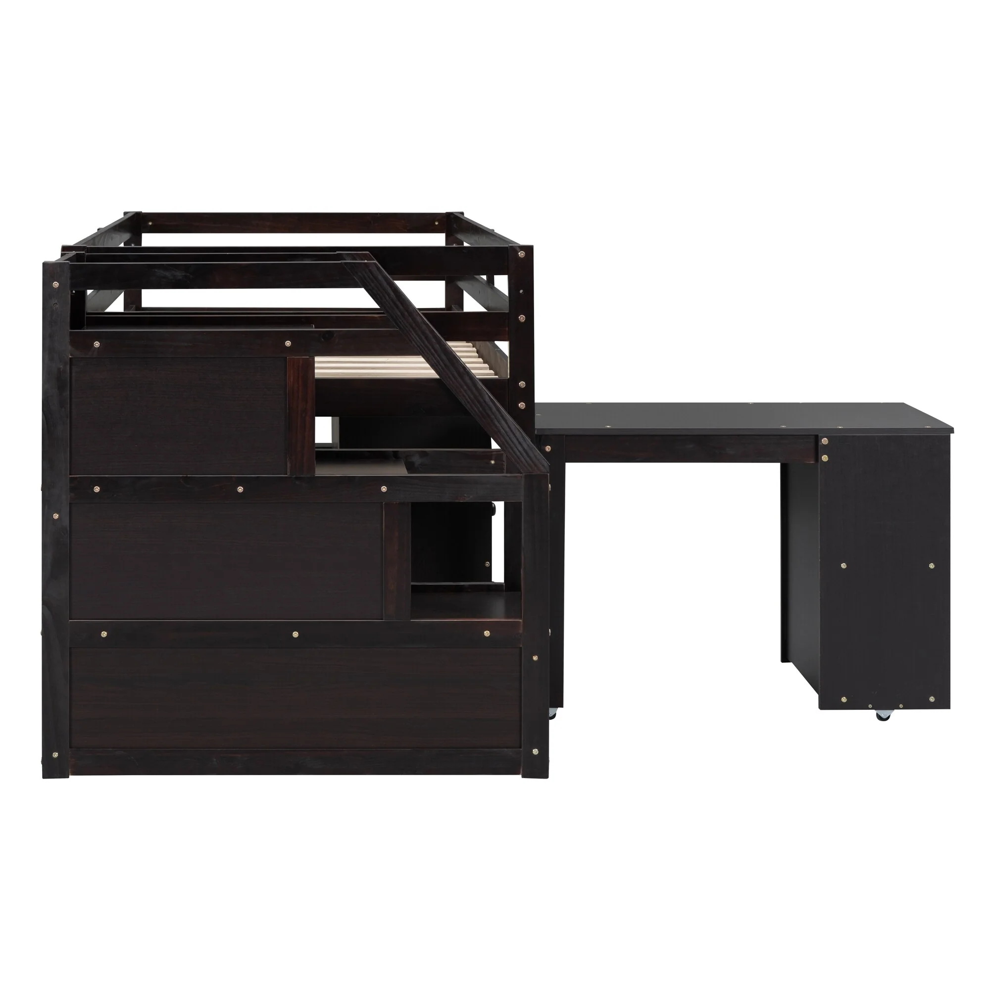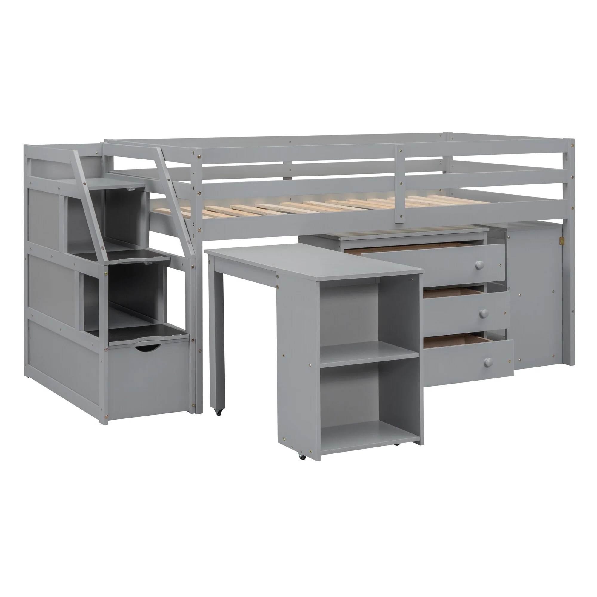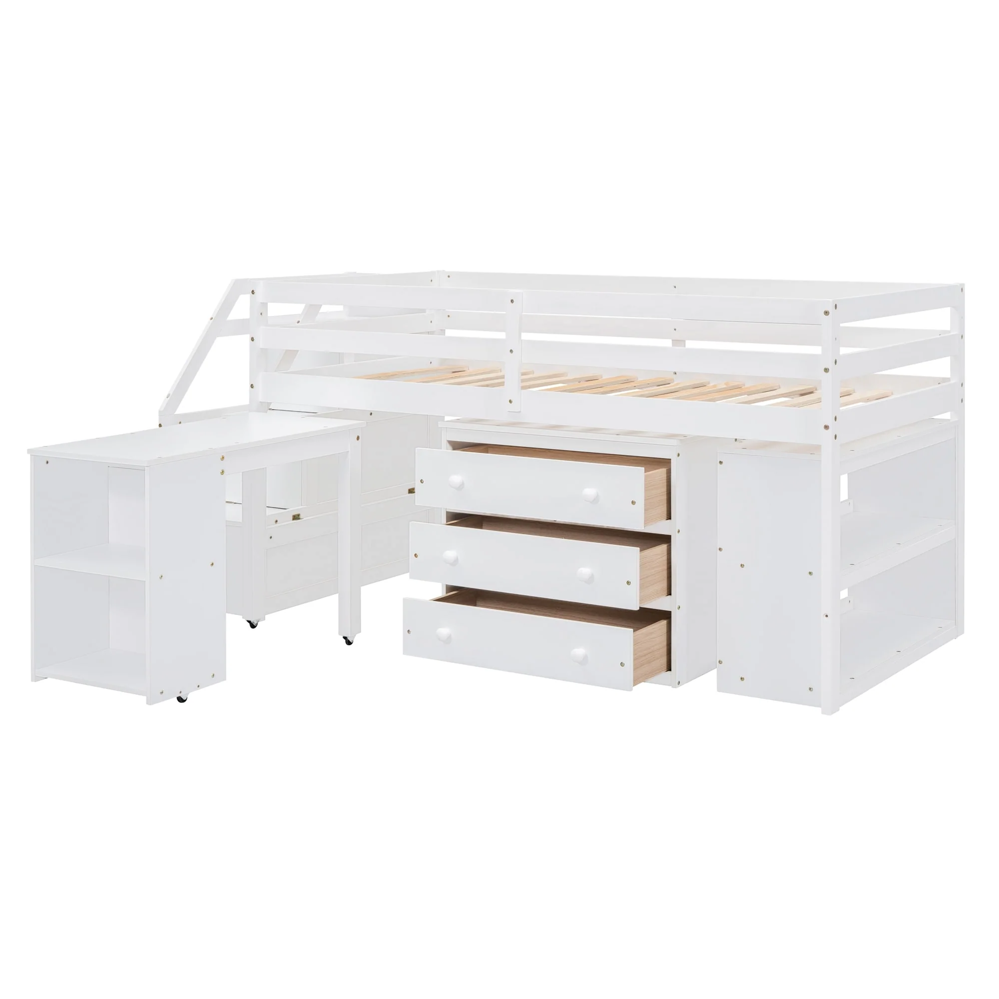 Twin Size Loft Bed with Retractable Desk and Storage, Space-Saving Design