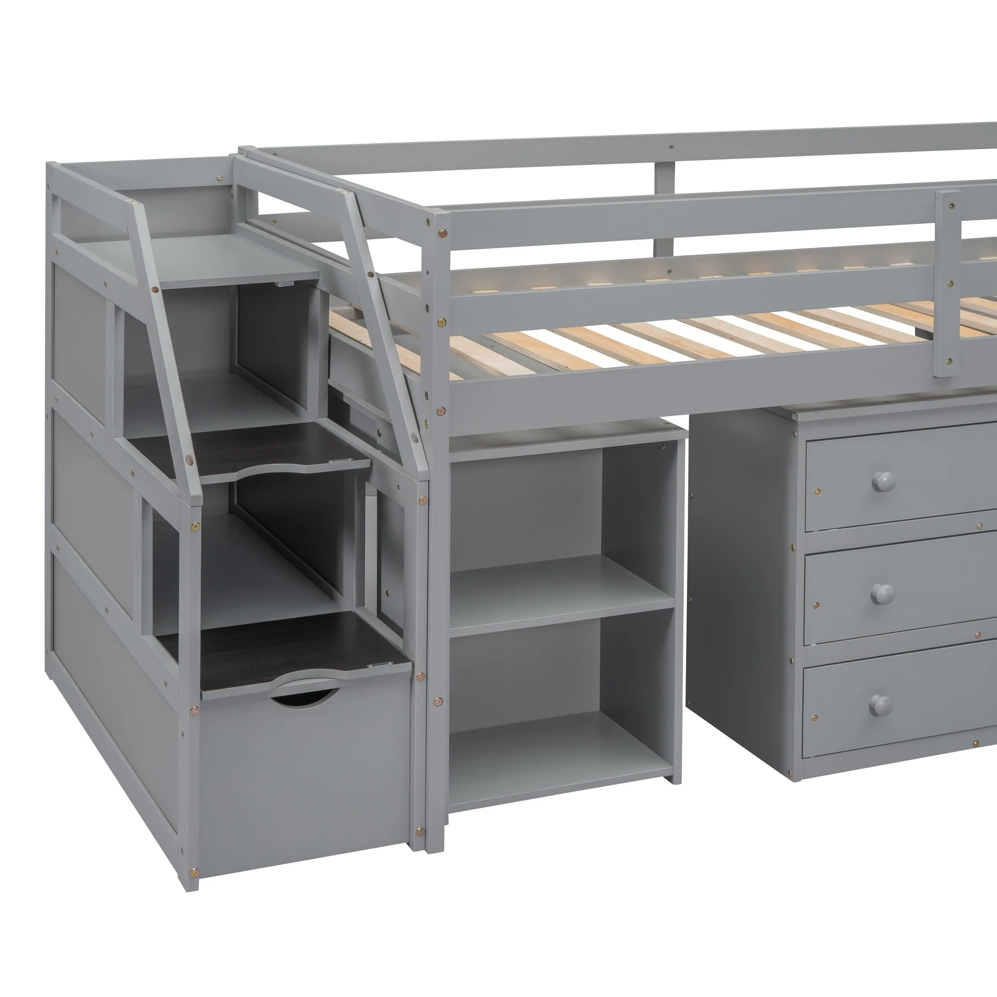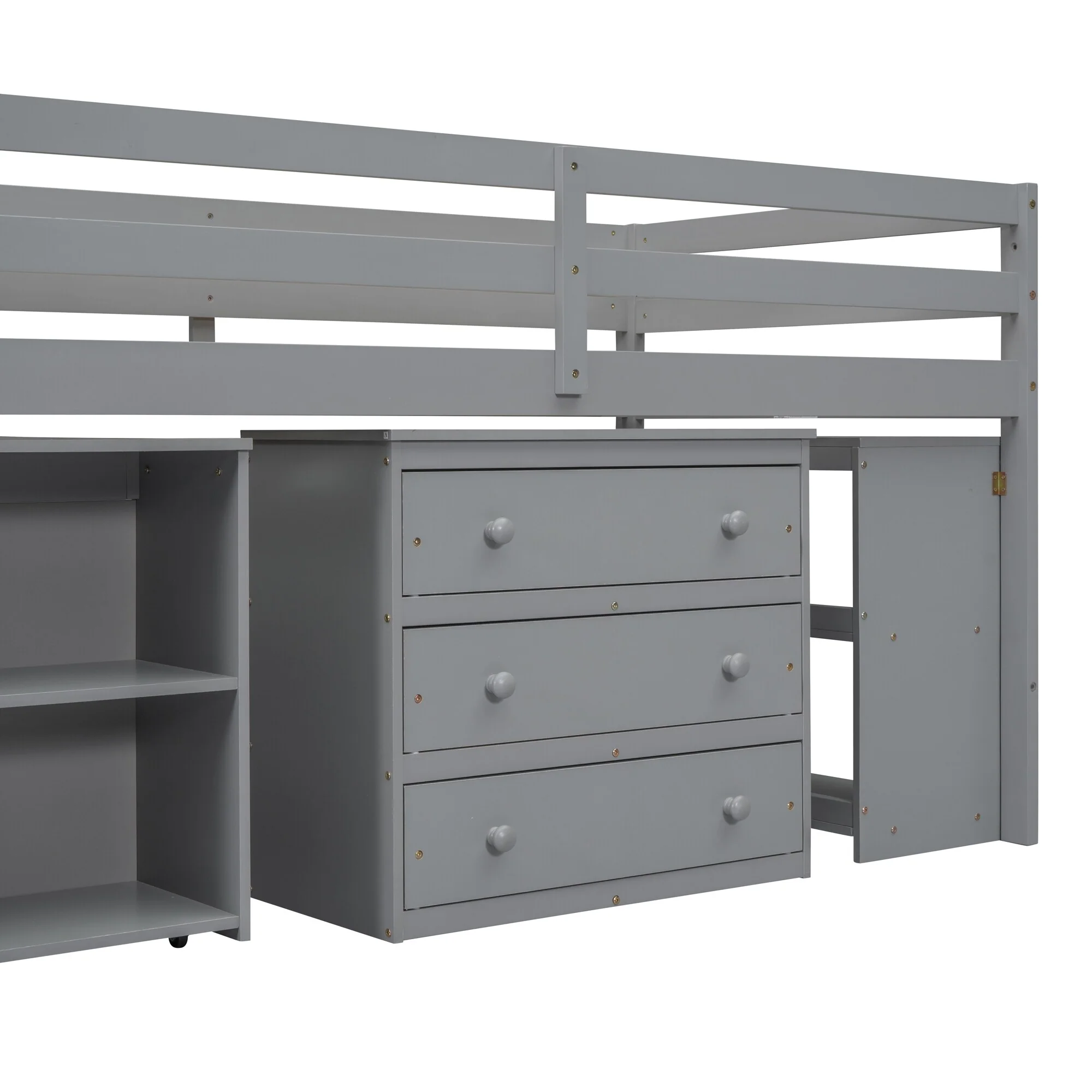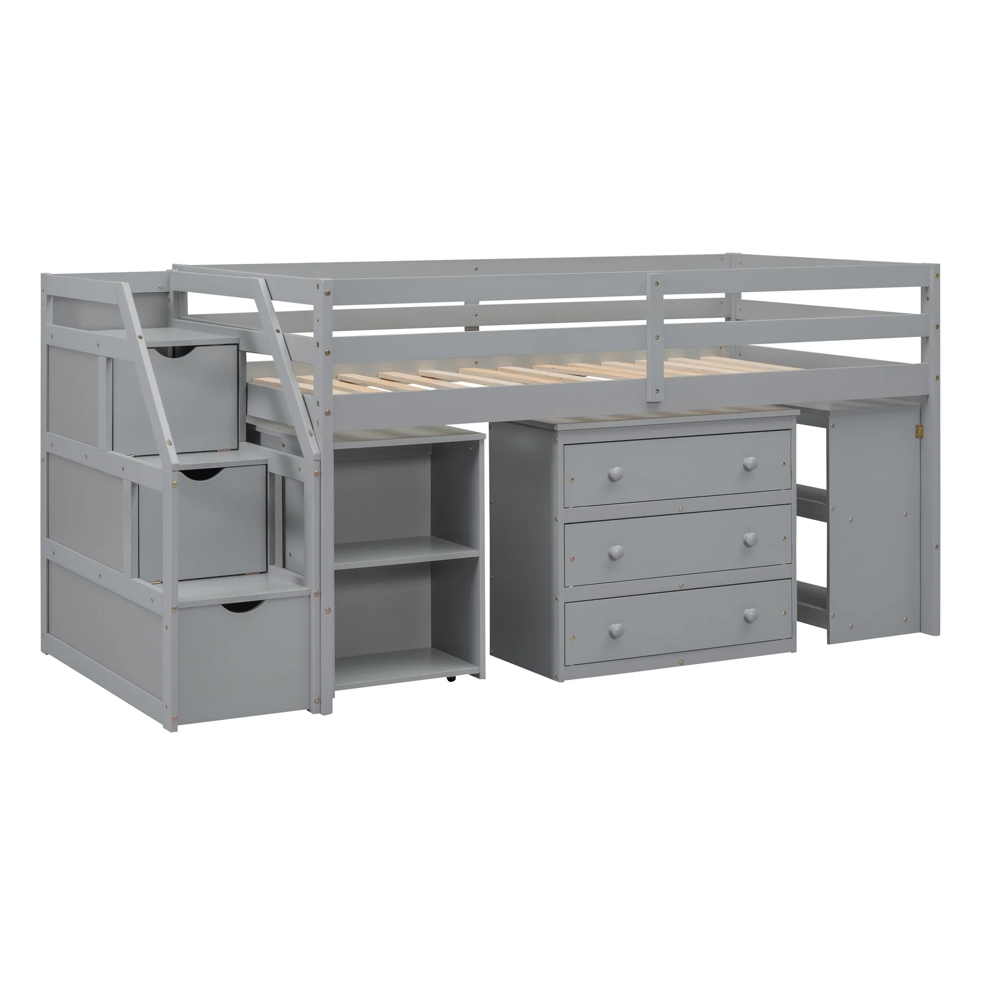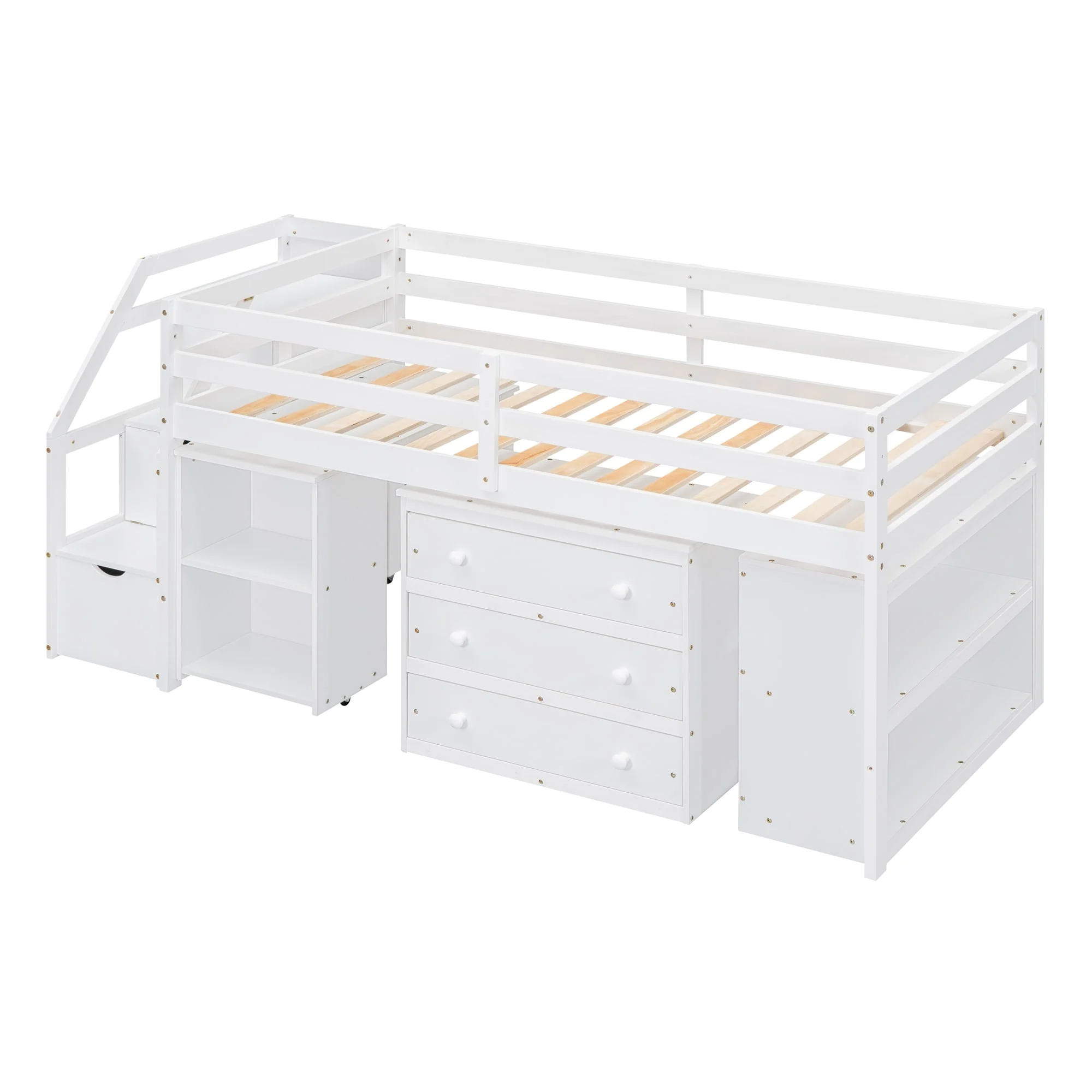 Twin Size Loft Bed with Retractable Desk and Storage, Space-Saving Design